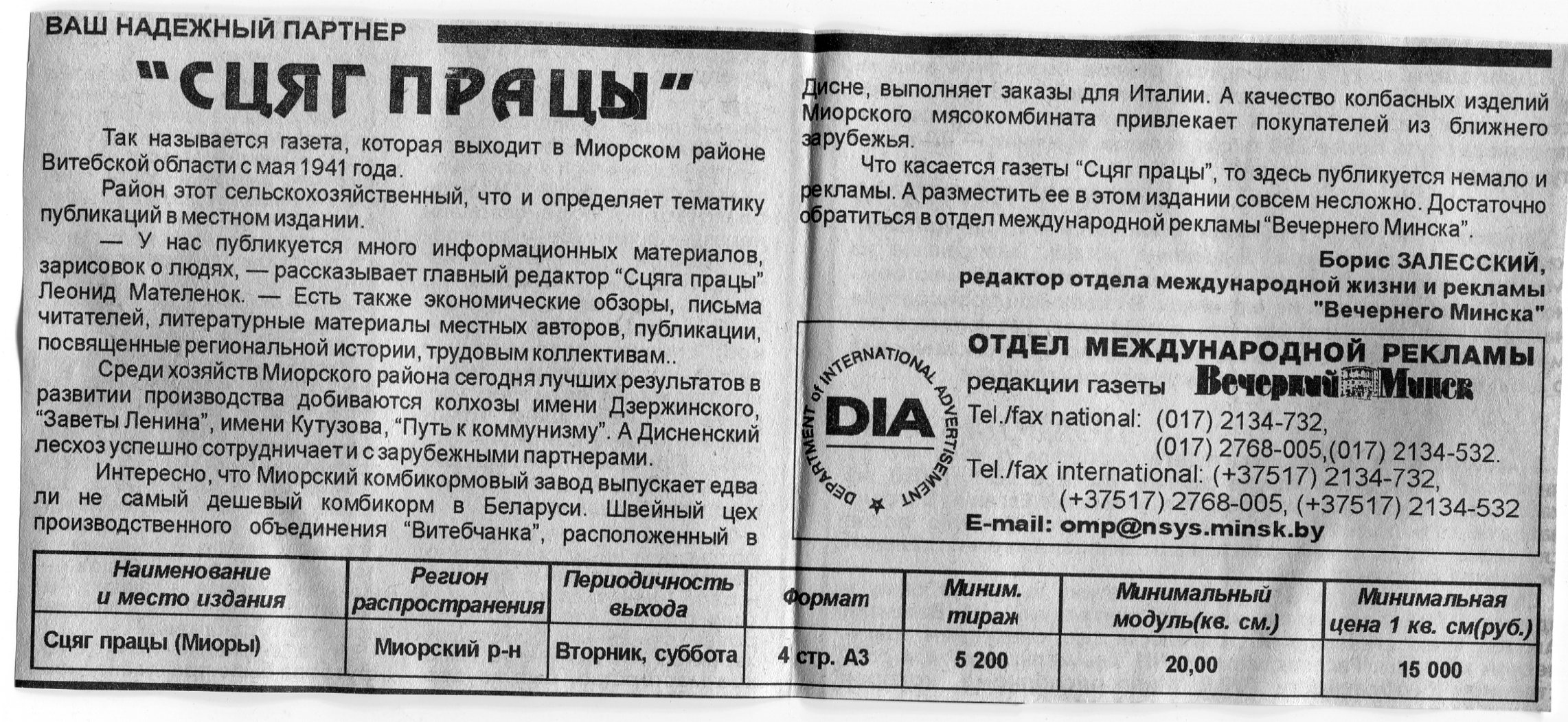 Залесский, Б. Надо открывать новые рынки / Б. Залесский // Вечерний Минск. - 1998. - 18 дек.