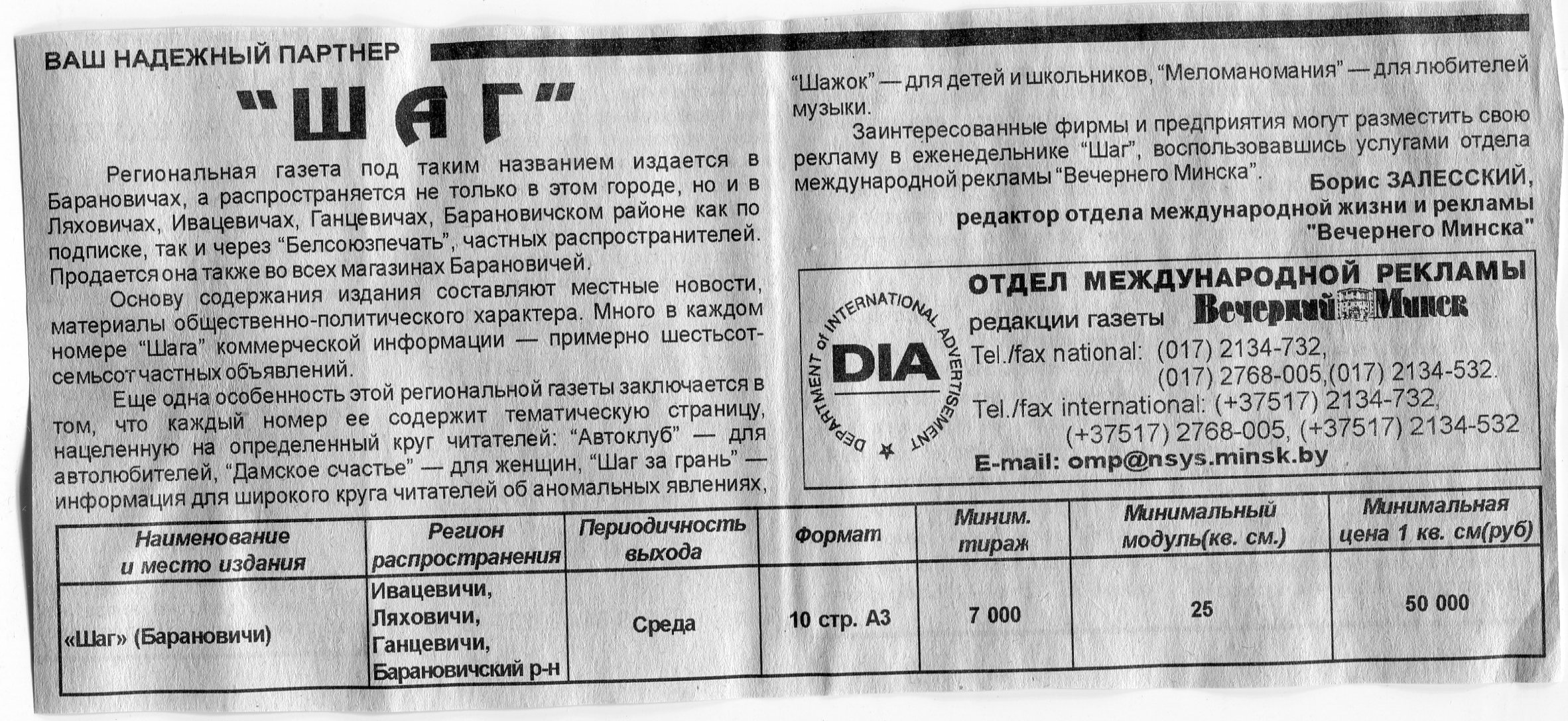 Залесский, Б. "Шаг" / Б. Залесский // Вечерний Минск. – 1998. – 28 дек.