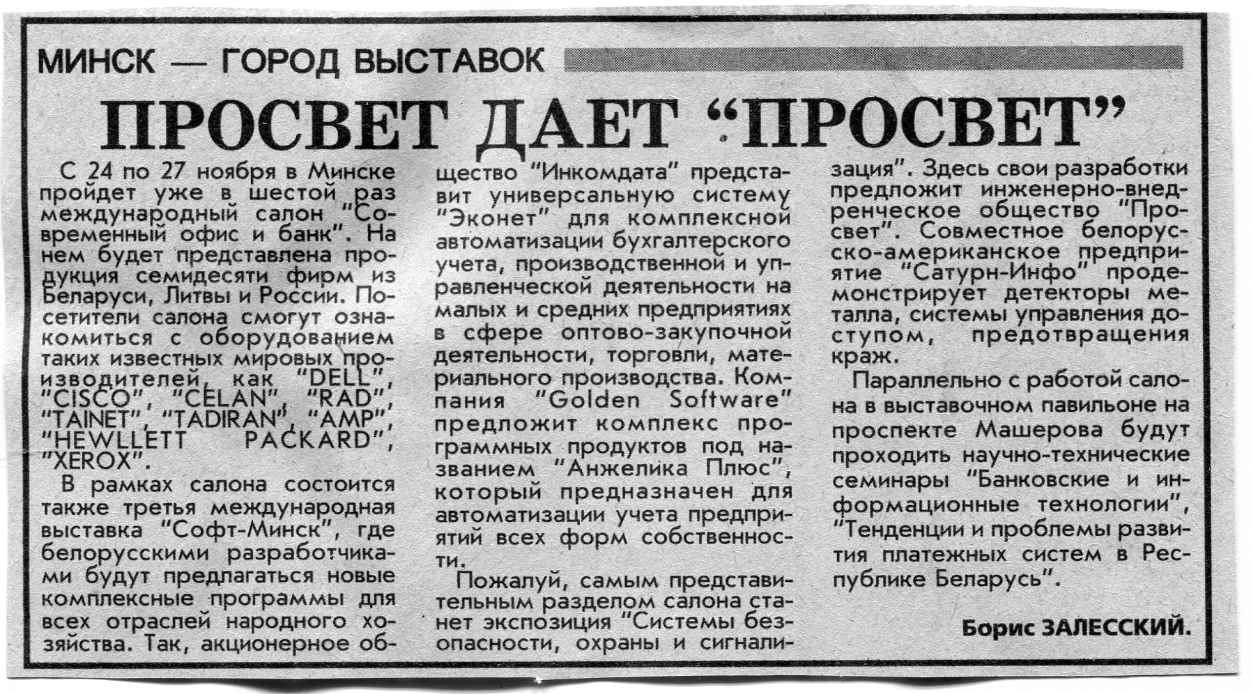 Залесский, Б. Просвет дает "Просвет" / Б. Залесский // Вечерний Минск. - 1998. - 24 нояб.