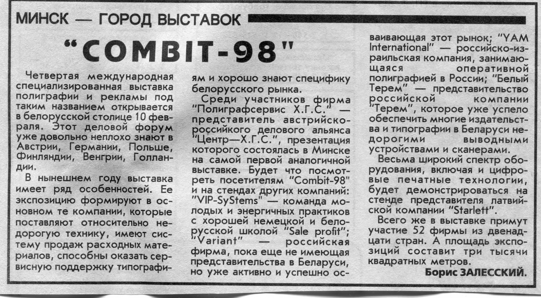 Залесский, Б. "Combit-98" / Б. Залесский // Вечерний Минск. - 1998. - 9 февр.