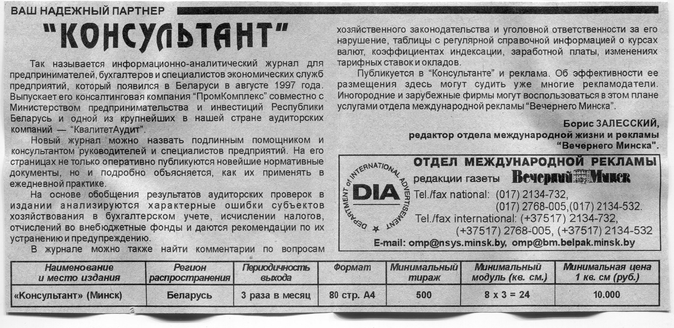 Залесский, Б. "Консультант" / Б. Залесский // Вечерний Минск. – 1998. – 29 янв.