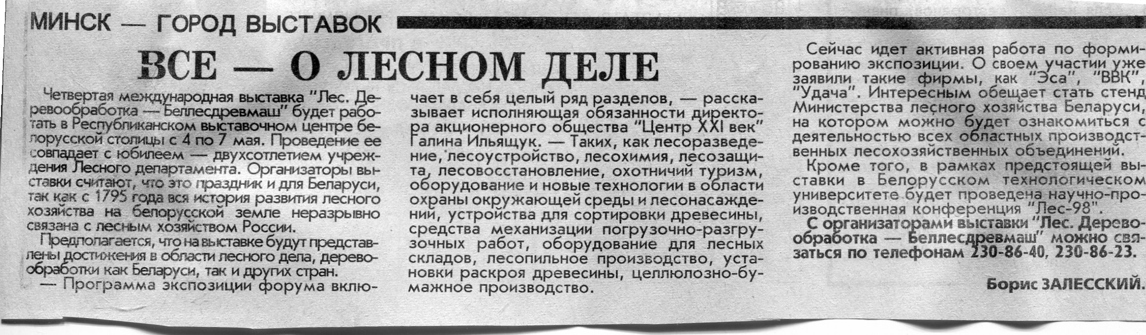 Залесский, Б. Все - о лесном деле / Б. Залесский // Вечерний Минск. - 1998. - 20 мар.