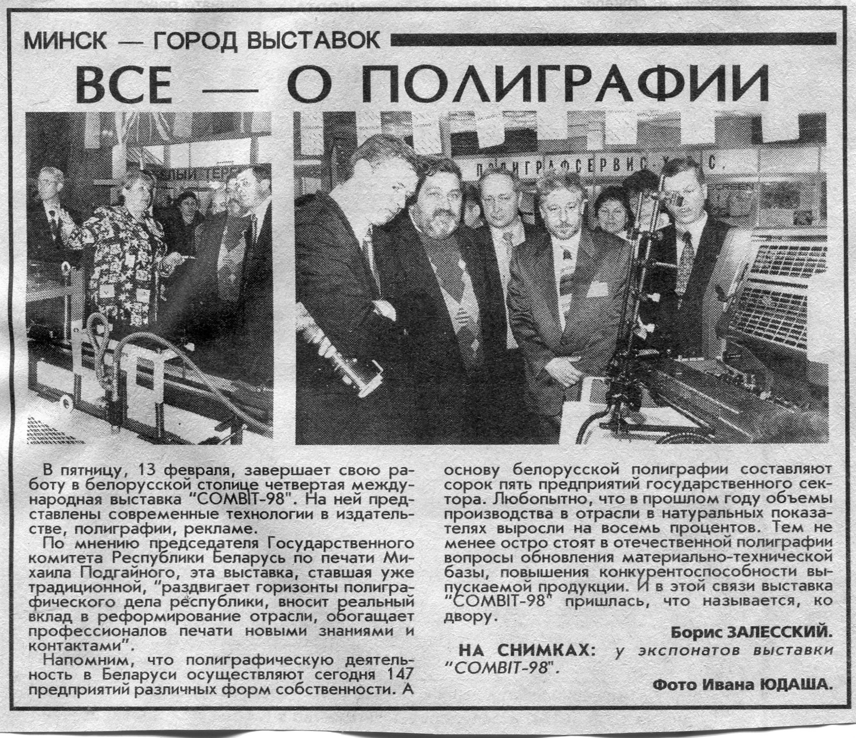 Залесский, Б. Все - о полиграфии / Б. Залесский // Вечерний Минск. - 1998. - 13 февр.
