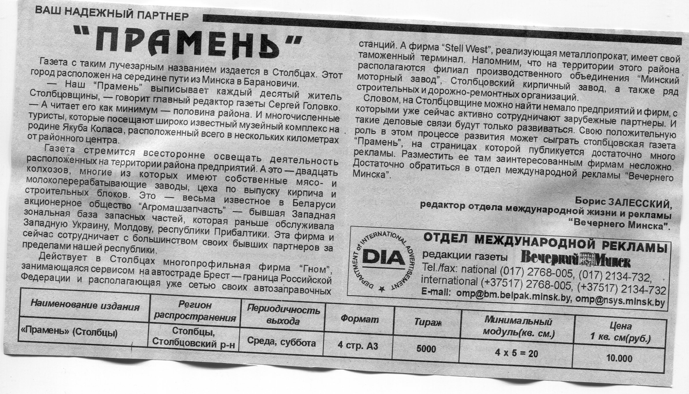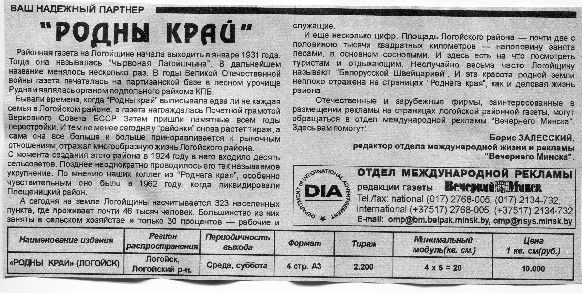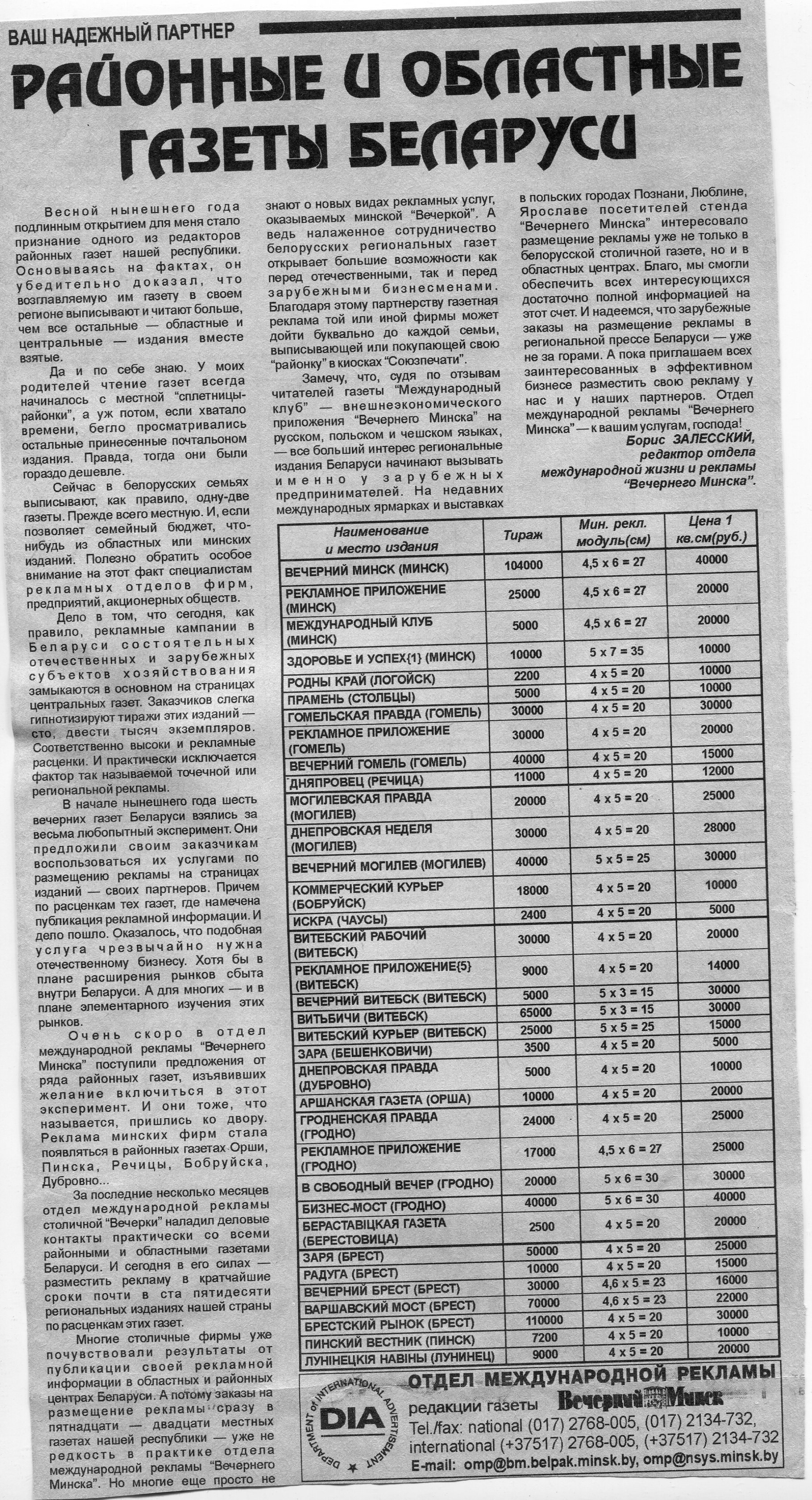 Залесский, Б. Районные и областные газеты Беларуси / Б. Залесский // Вечерний Минск. - 1997. - 15 окт.
