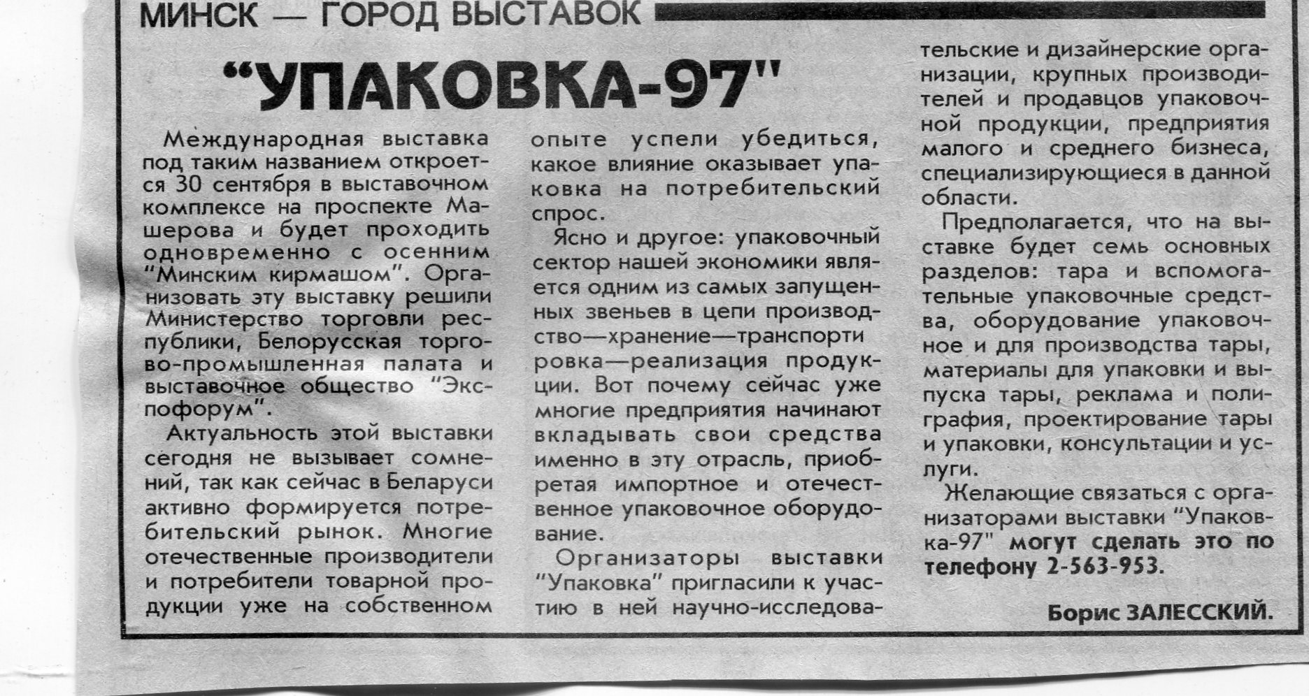 Залесский, Б. "Упаковка-97" / Б. Залесский // Вечерний Минск. - 1997. - 1 сент.