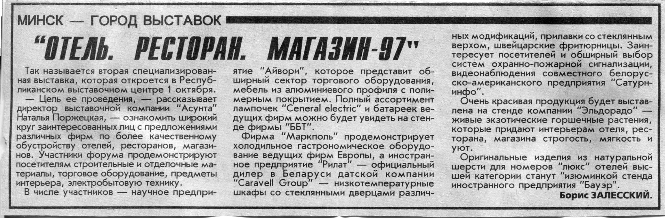 Залесский, Б. "Отель. Ресторан. Магазин-97" / Б. Залесский // Вечерний Минск. - 1997. - 24 сент.