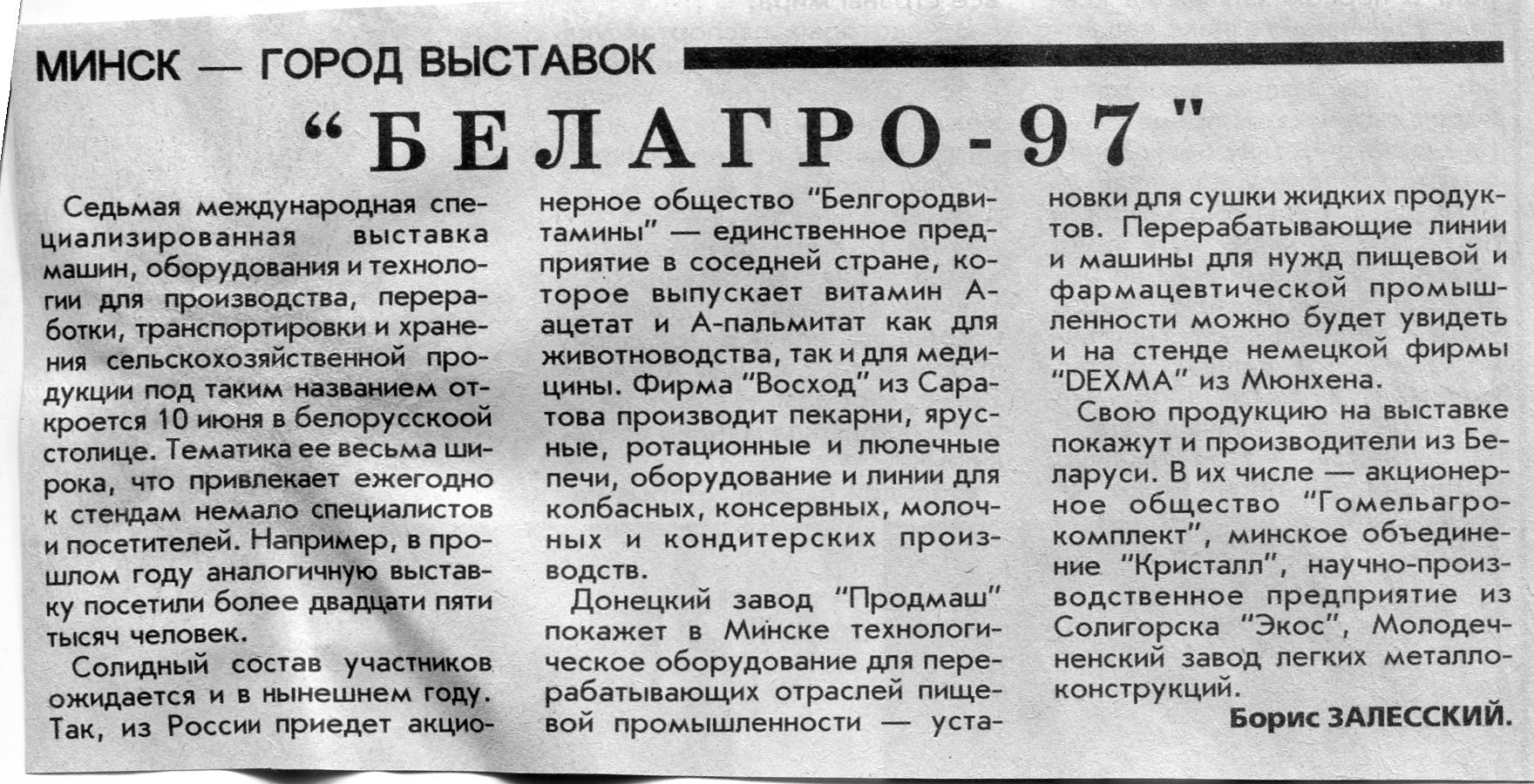 Залесский, Б. "Белагро-97" / Б. Залесский // Вечерний Минск. - 1997. - 28 мая.