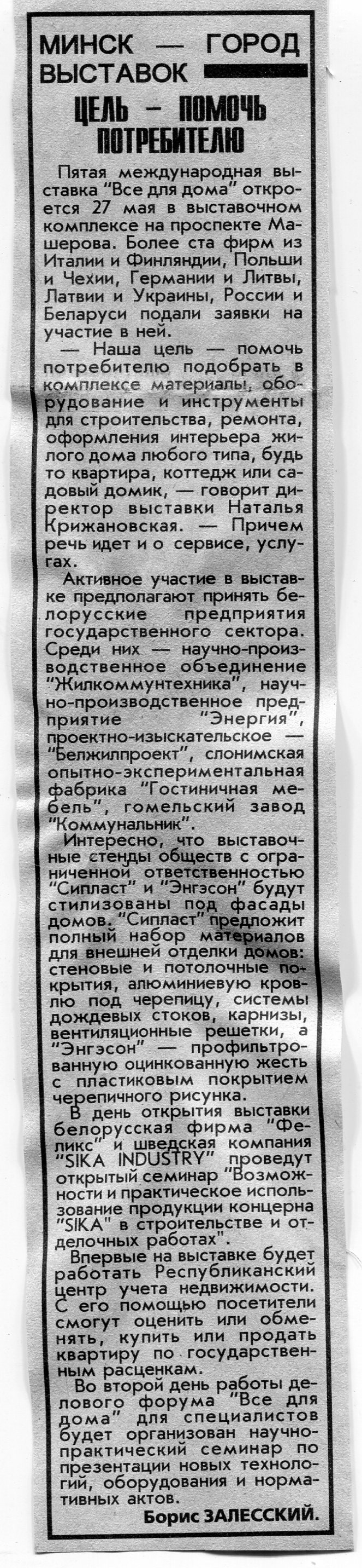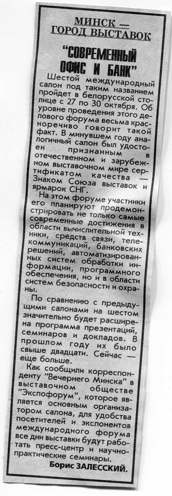 Залесский, Б. "Современный офис и банк" / Б. Залесский // Вечерний Минск. - 1997. - 12 авг.