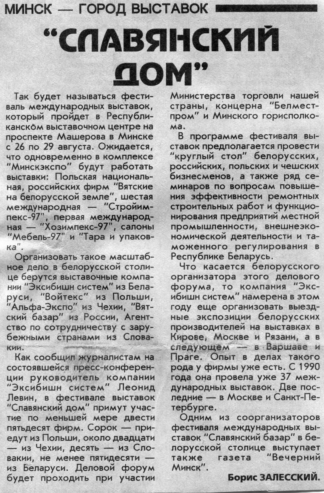 Залесский, Б. "Славянский дом" / Б. Залесский // Вечерний Минск. - 1997. - 11 июл.