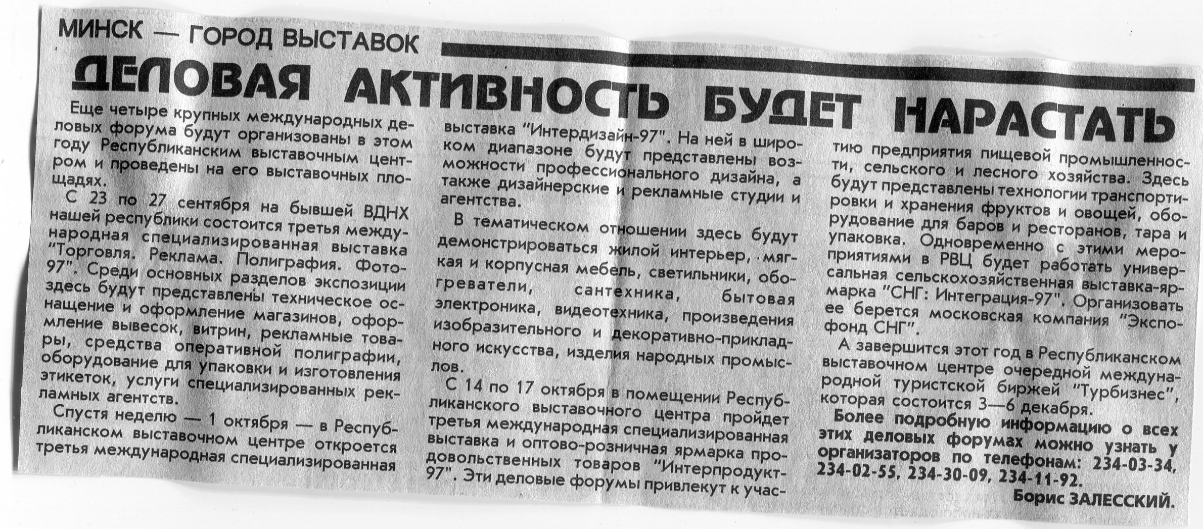 Залесский, Б. "Белхимия-97" подводит итоги / Б. Залесский // Вечерний Минск. - 1997. - 23 мая.