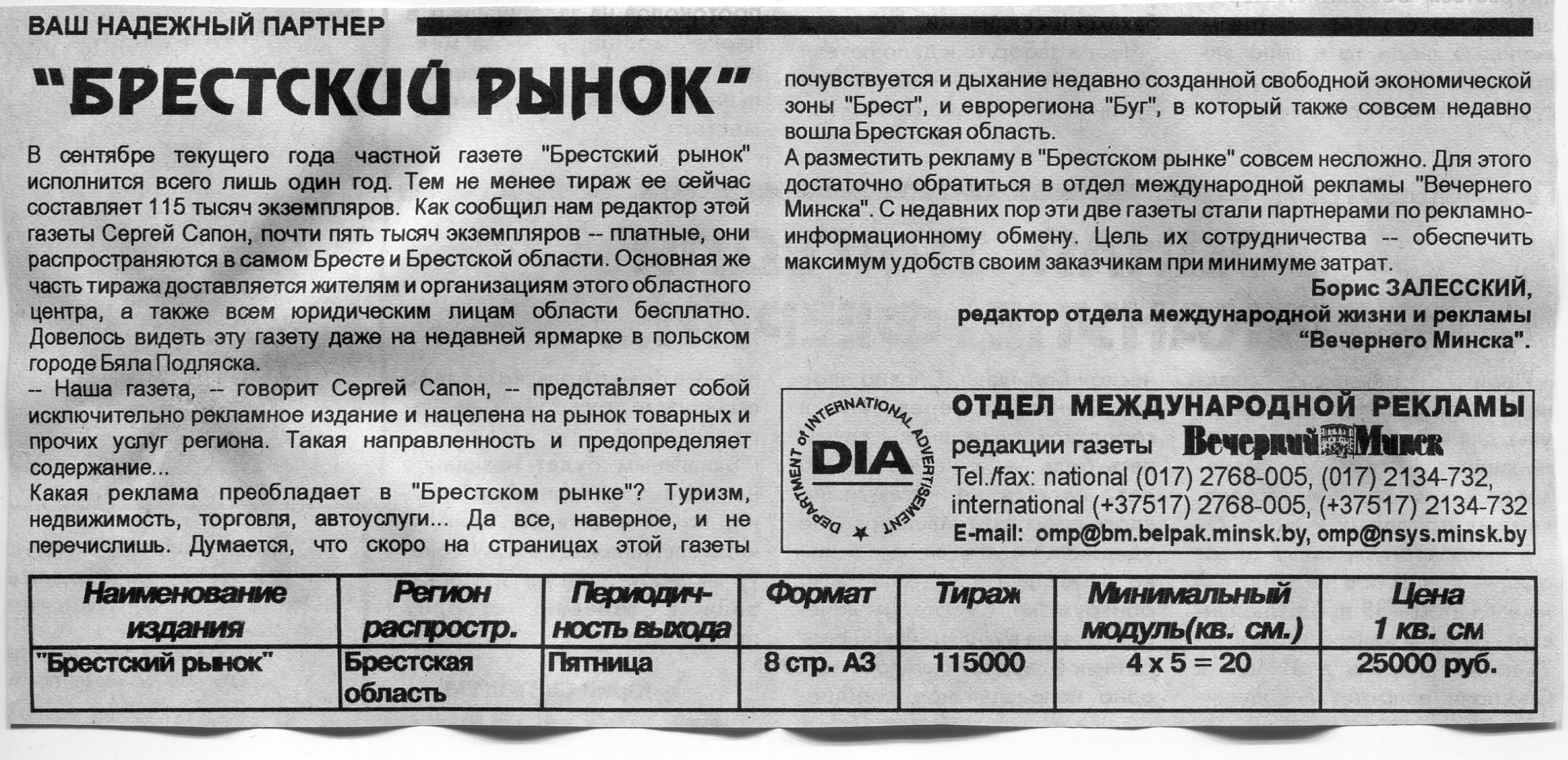 Залесский, Б. "Брестский рынок" / Б. Залесский // Вечерний Минск. - 1997. - 10 июл.