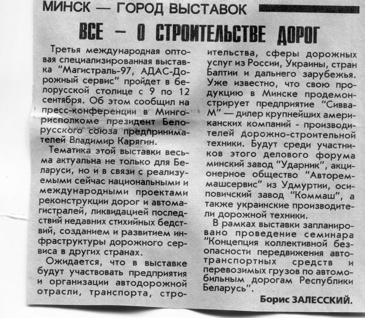 Залесский, Б. Все - о строительстве дорог / Б. Залесский // Вечерний Минск. - 1997. - 14 авг.