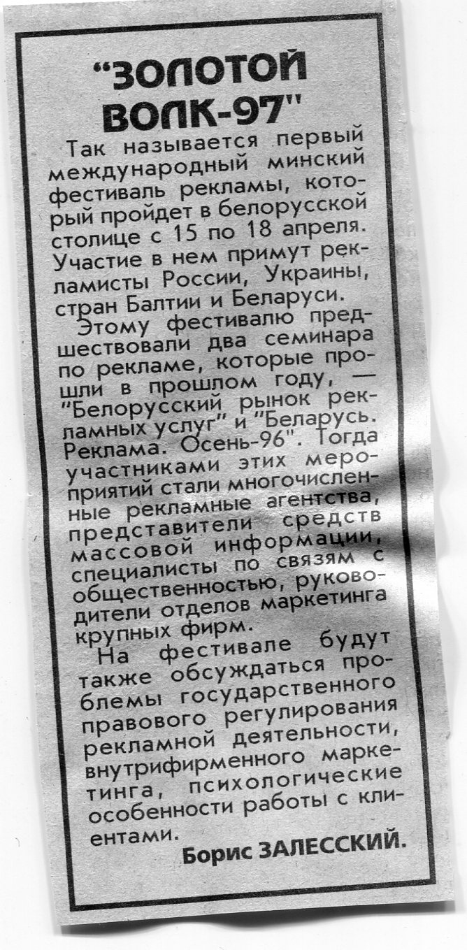 Залесский, Б. "Золотой волк-97" / Б. Залесский // Вечерний Минск. - 1997. - 15 апр.