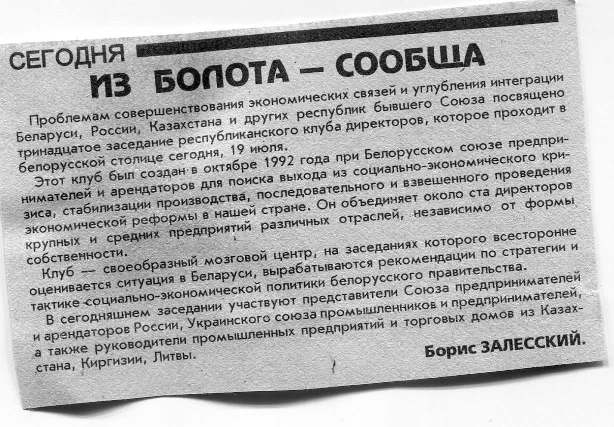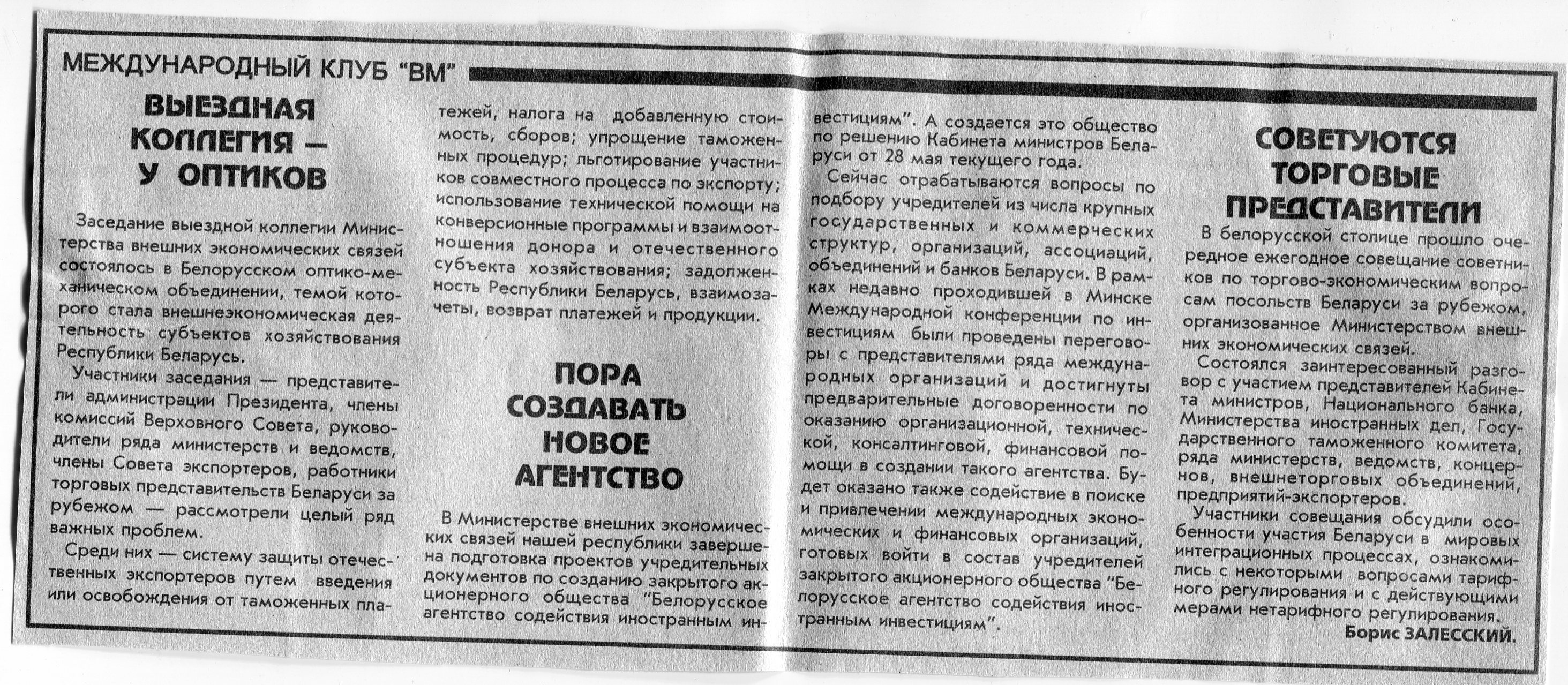 Залесский, Б. Пора создавать новое агентство / Б. Залесский // Вечерний Минск. - 1996. - 18 июл.
