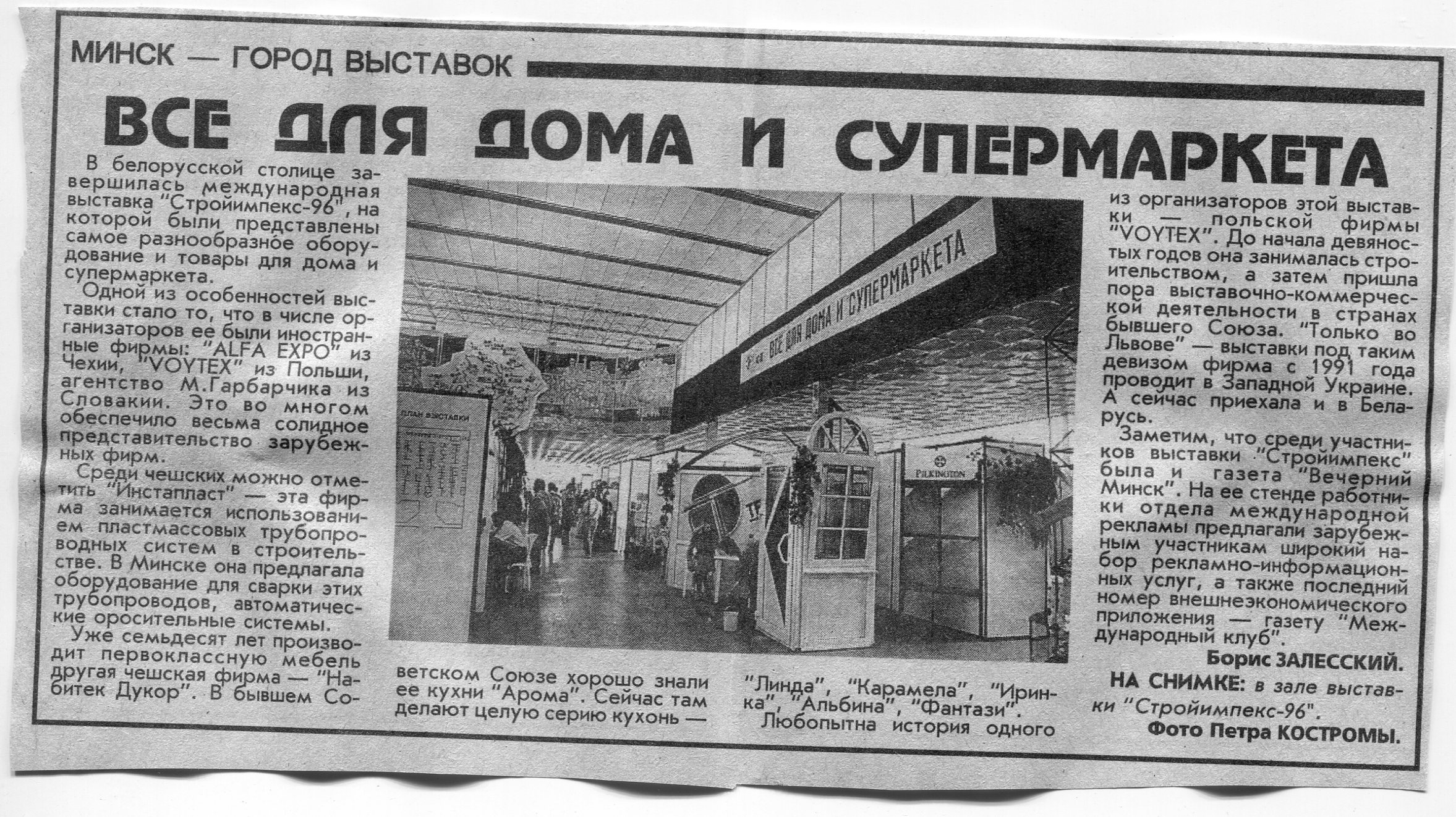Залесский, Б. Все для дома и супермаркета / Б. Залесский // Вечерний Минск. - 1996. - 2 сент.