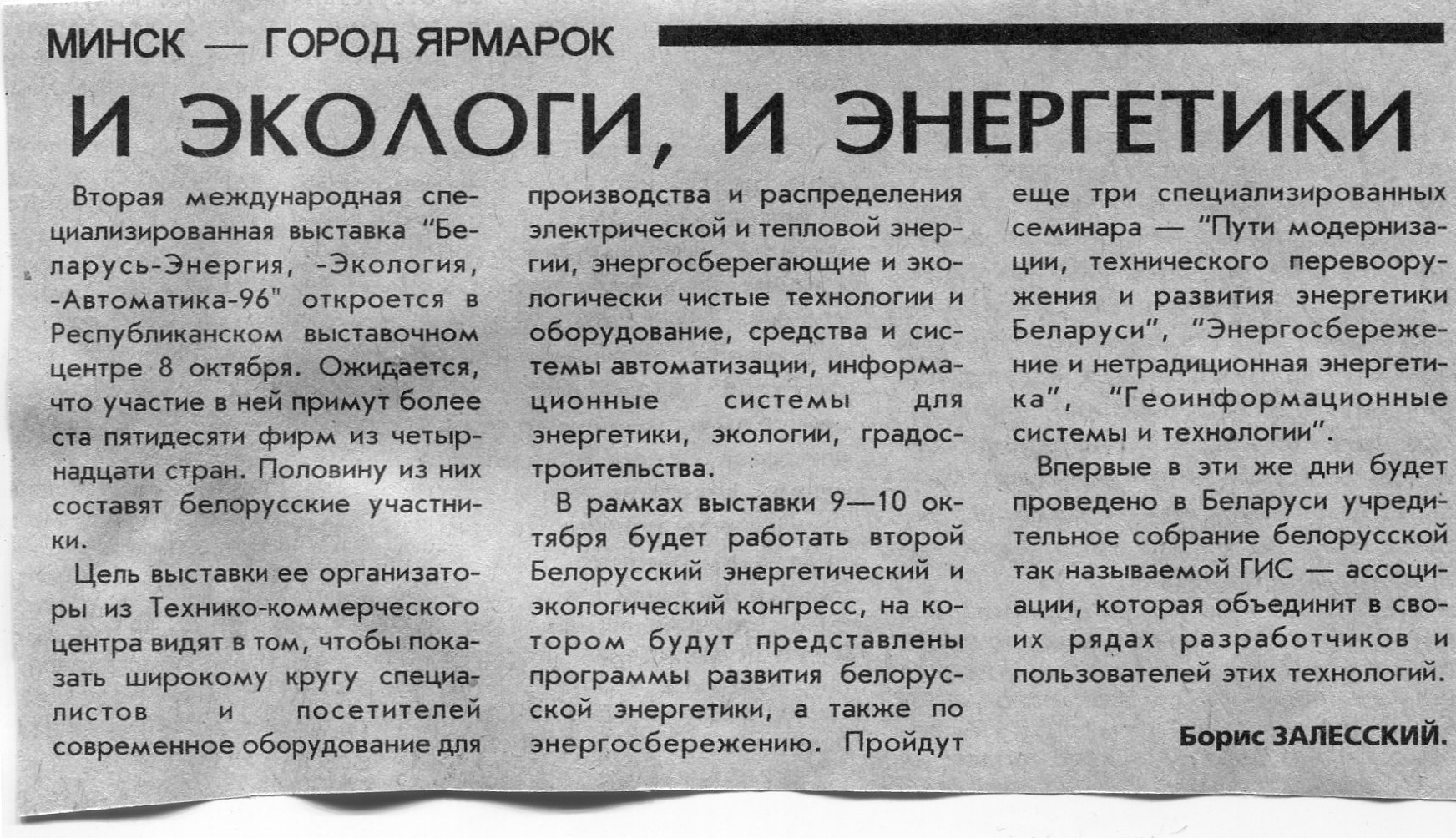 Залесский, Б. И экологи, и энергетики / Б. Залесский // Вечерний Минск. - 1996. - 1 окт.