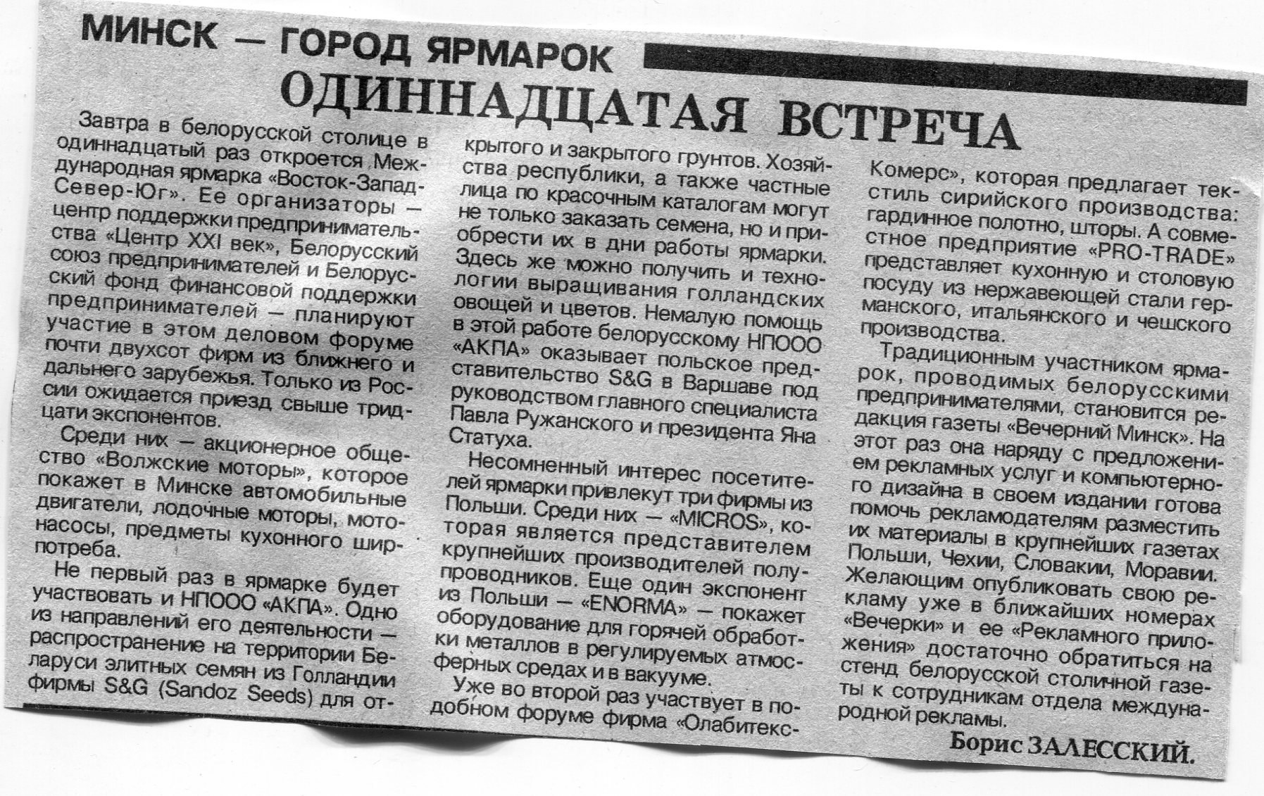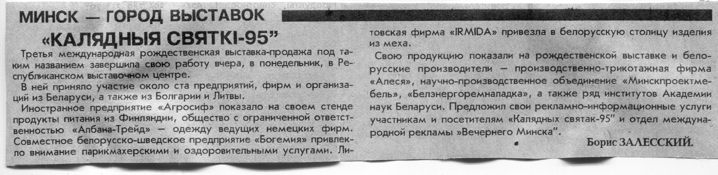 Залесский, Б. "Реклама. Издательские системы. Оперативная полиграфия" / Б. Залесский // Вечерний Минск. - 1995. - 7 дек.