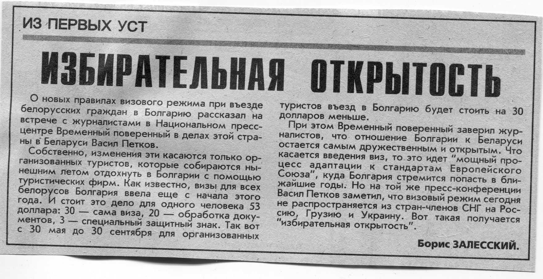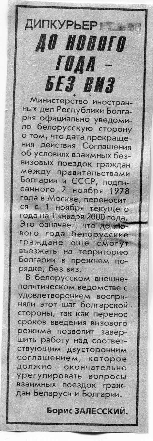 Залесский, Б. До нового года - без виз / Б. Залесский // Вечерний Минск. - 1999. - 19 нояб.