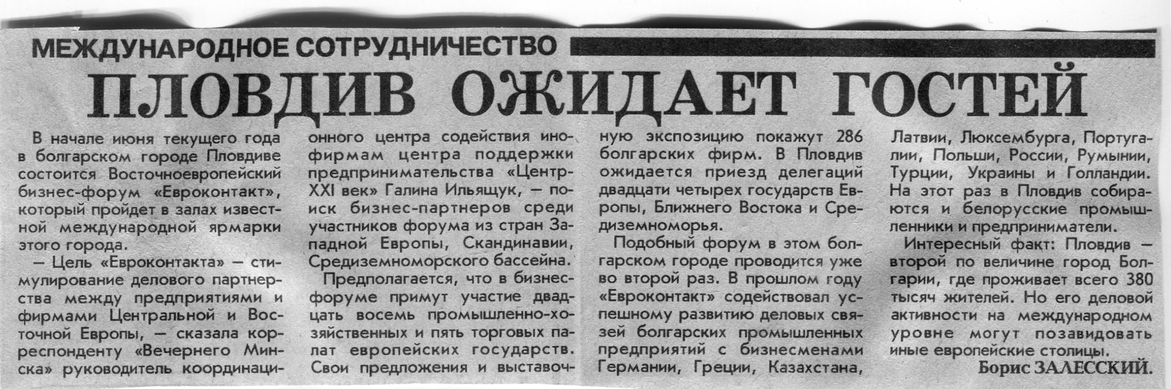 Залесский, Б. Говорим - Минск, подразумеваем - Пловдив? / Б. Залесский // Вечерний Минск. - 1995. - 28 авг.