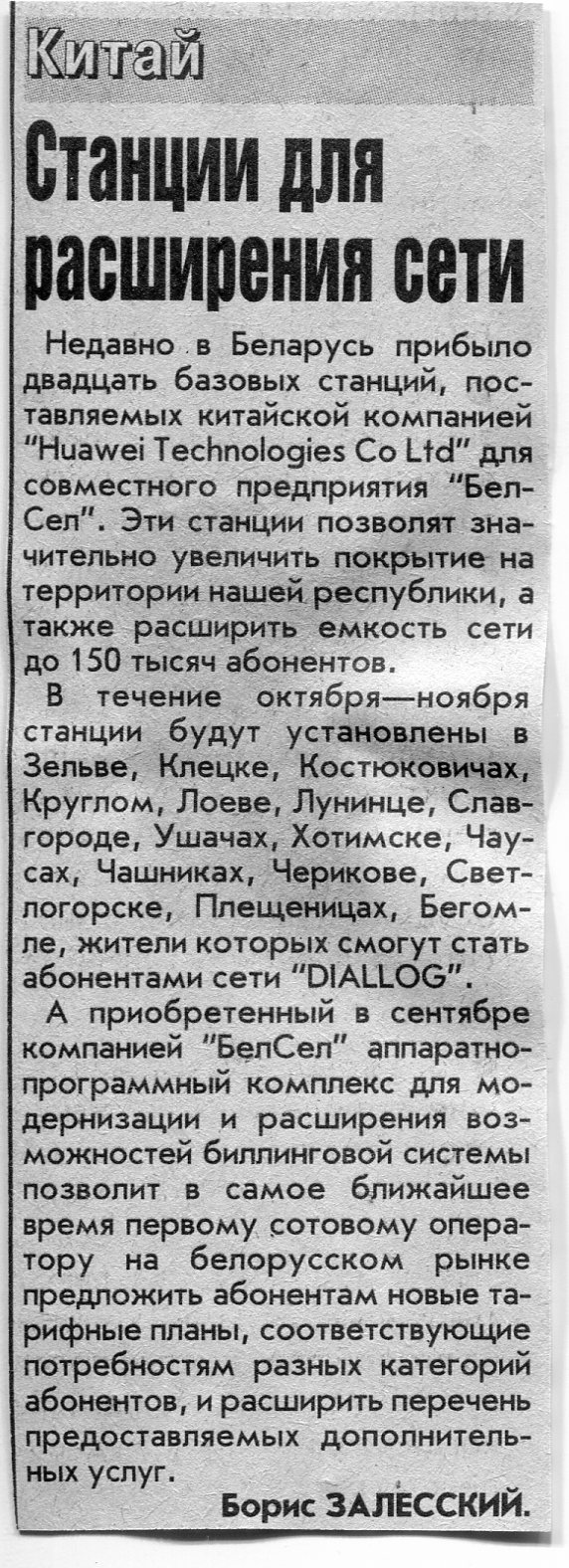 Залесский, Б. Станции для расширения сети / Б. Залесский // Вечерний Минск. - 2006. - 29 сент.