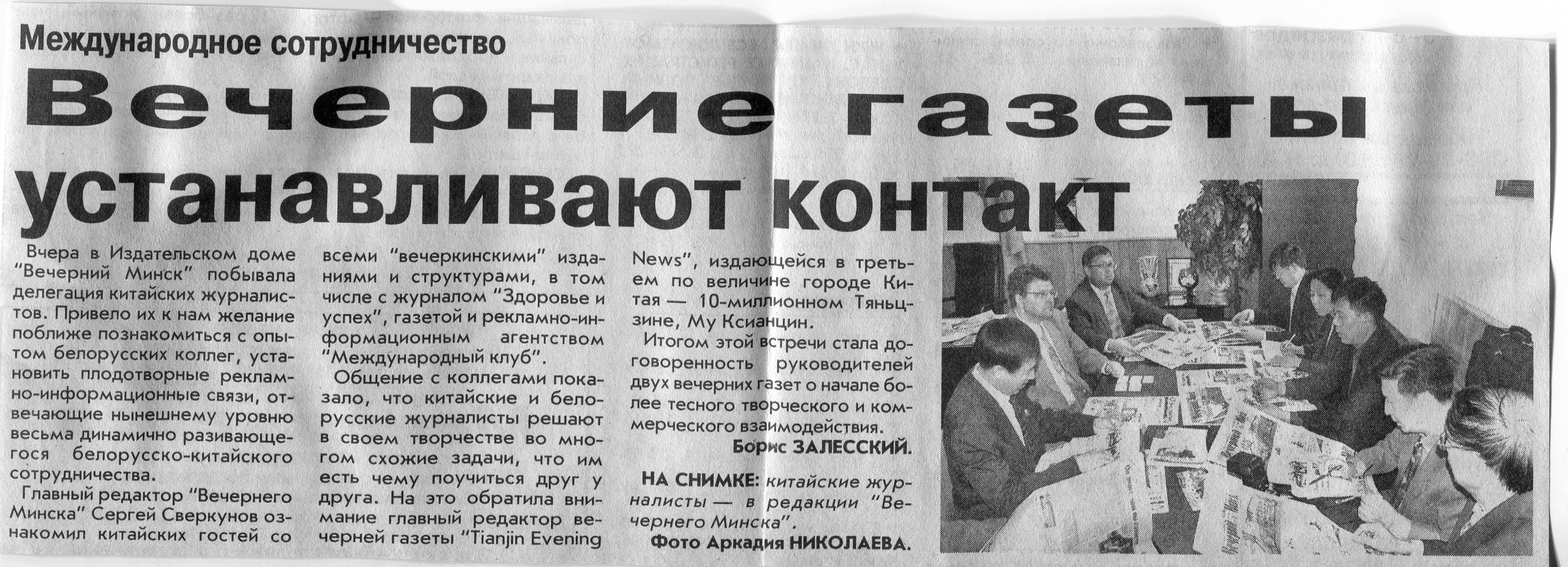 Залесский, Б. Вечерние газеты устанавливают контакт / Б. Залесский // Вечерний Минск. - 2004. - 10 июн.