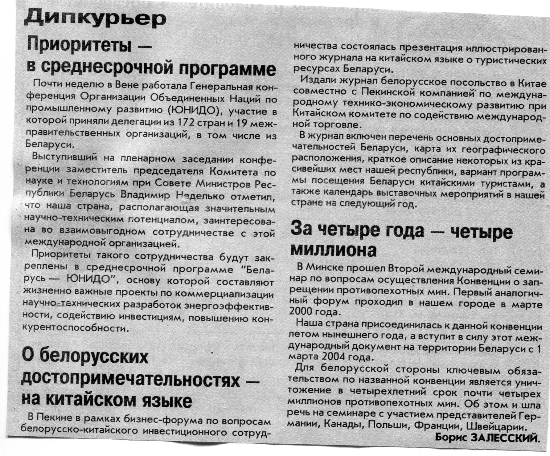 Залесский, Б. На китайском языке - о Беларуси / Б. Залесский // Вечерний Минск. - 2002. - 26 нояб.