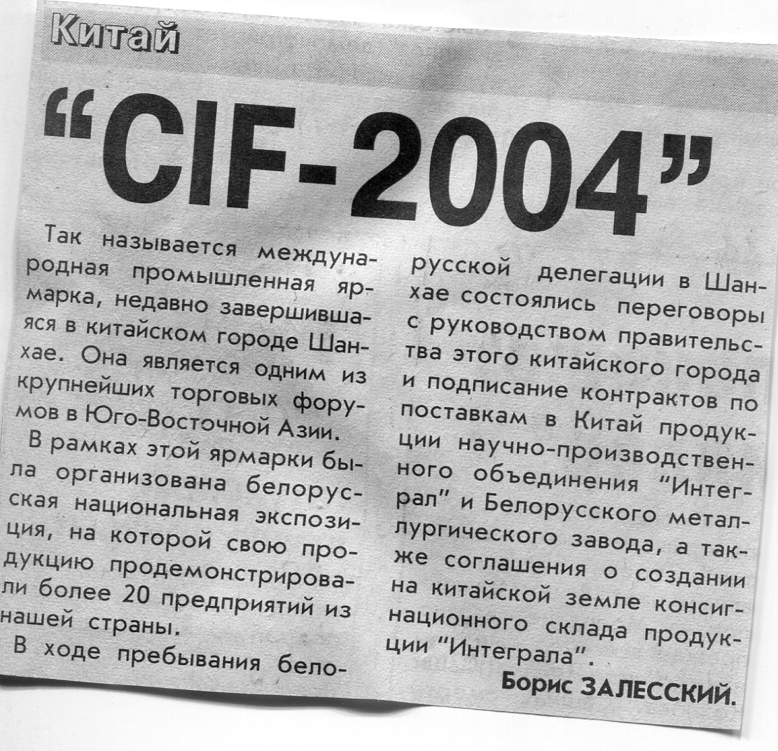 Залесский, Б. "CIF-2014" / Б. Залесский // Вечерний Минск. - 2004. - 15 нояб.
