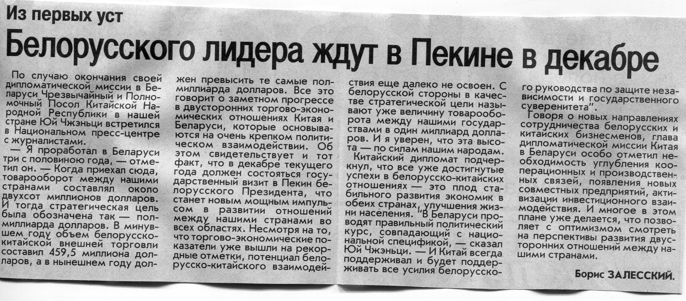 Залесский, Б. Белорусского лидера ждут в Пекине в декабре / Б. Залесский // Вечерний Минск. - 2005. - 12 авг.