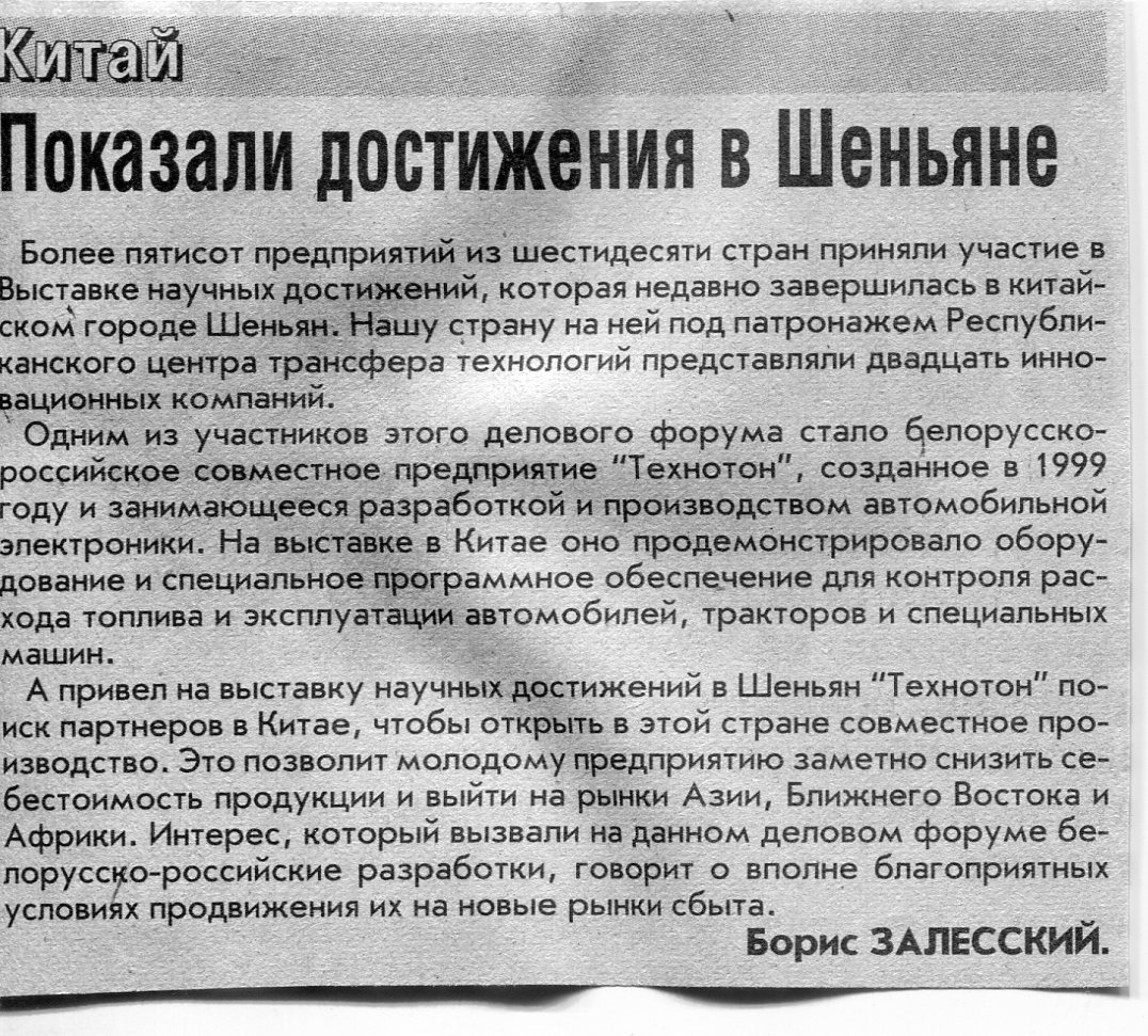 Залесский, Б. Тайваньский бизнес - на белорусской земле / Б. Залесский // Вечерний Минск. - 2003. - 11 сент.