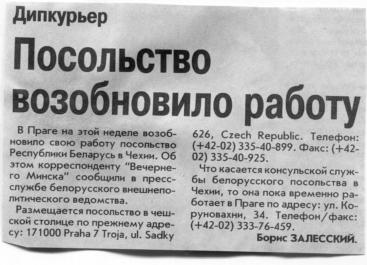 Залесский, Б. Посольство возобновило работу / Б. Залесский // Вечерний Минск. - 2002. - 29 авг.