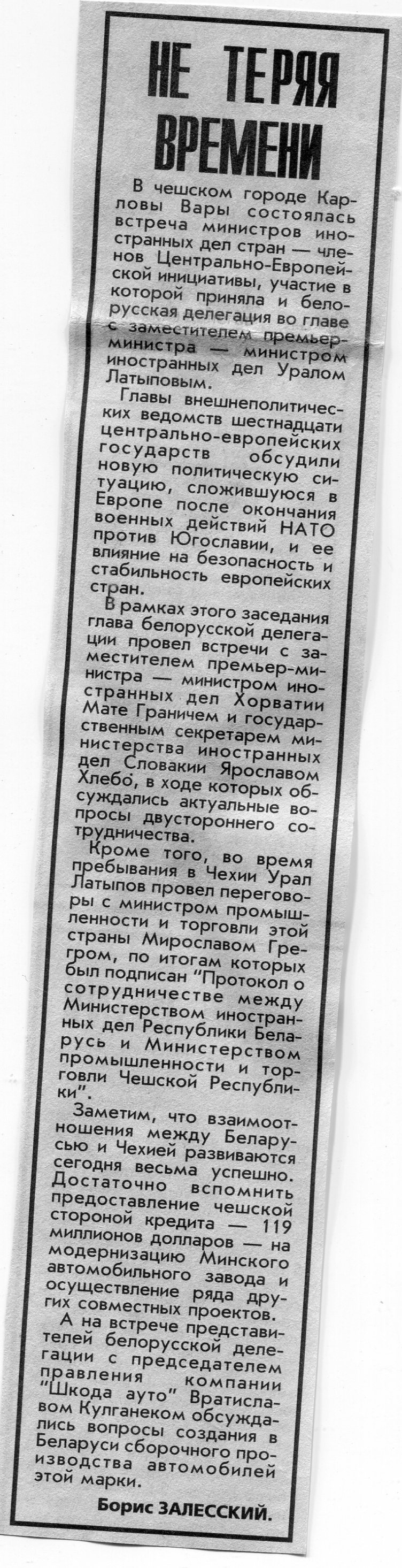 Залесский, Б. Не теряя времени / Б. Залесский // Вечерний Минск. - 1999. - 28 июн.
