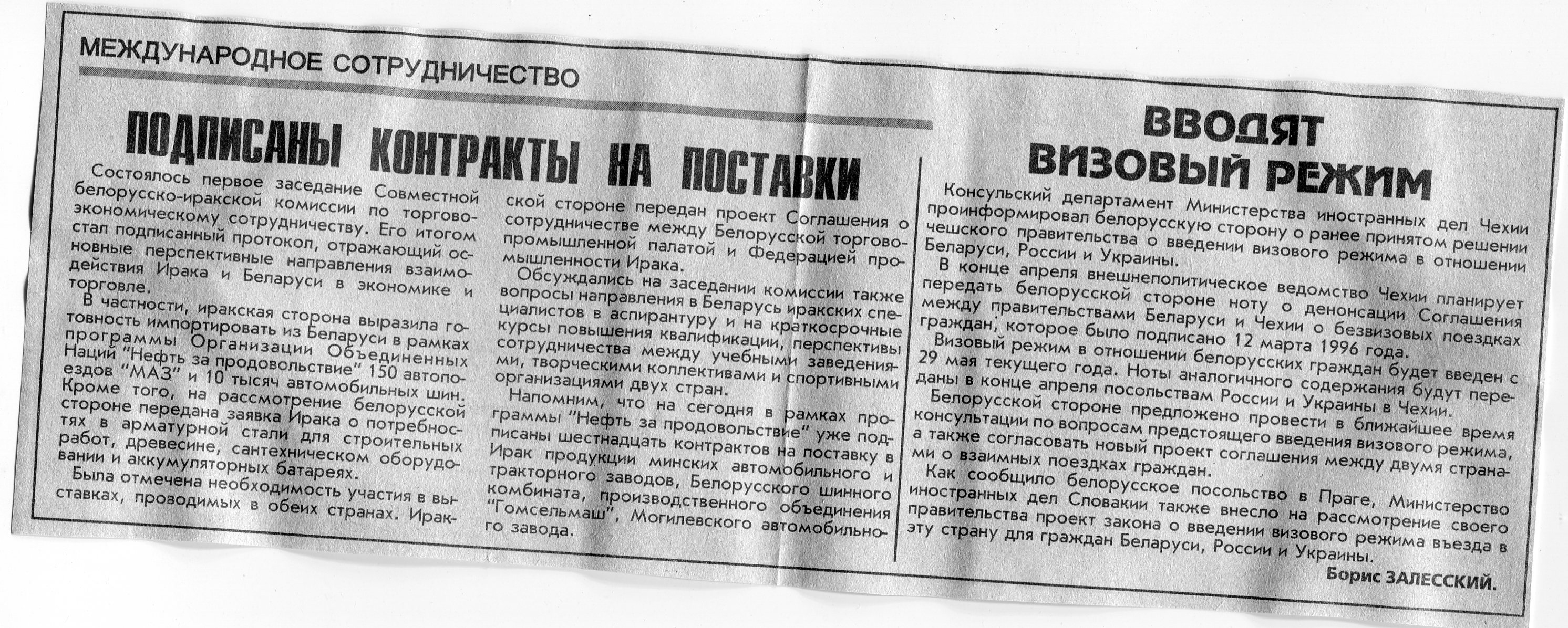 Залесский, Б. Вводят визовый режим / Б. Залесский // Вечерний Минск. - 2000. - 14 мар.