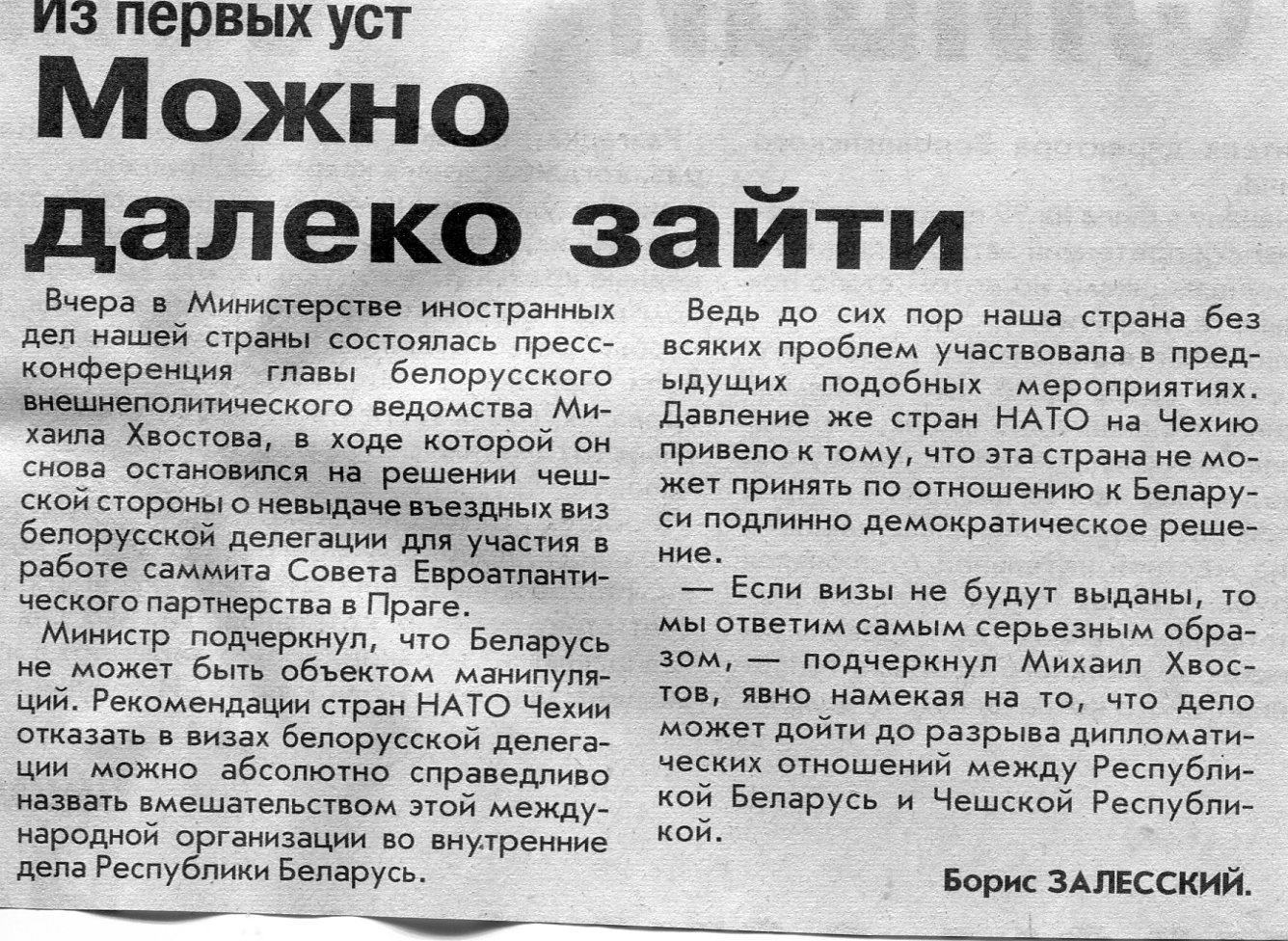 Залесский, Б. Можно далеко зайти / Б. Залесский // Вечерний Минск. – 2002. – 15 нояб.