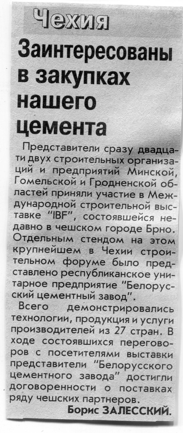 Залесский, Б. Заинтересованы в закупках нашего цемента / Б. Залесский // Вечерний Минск. - 2004. - 6 мая.