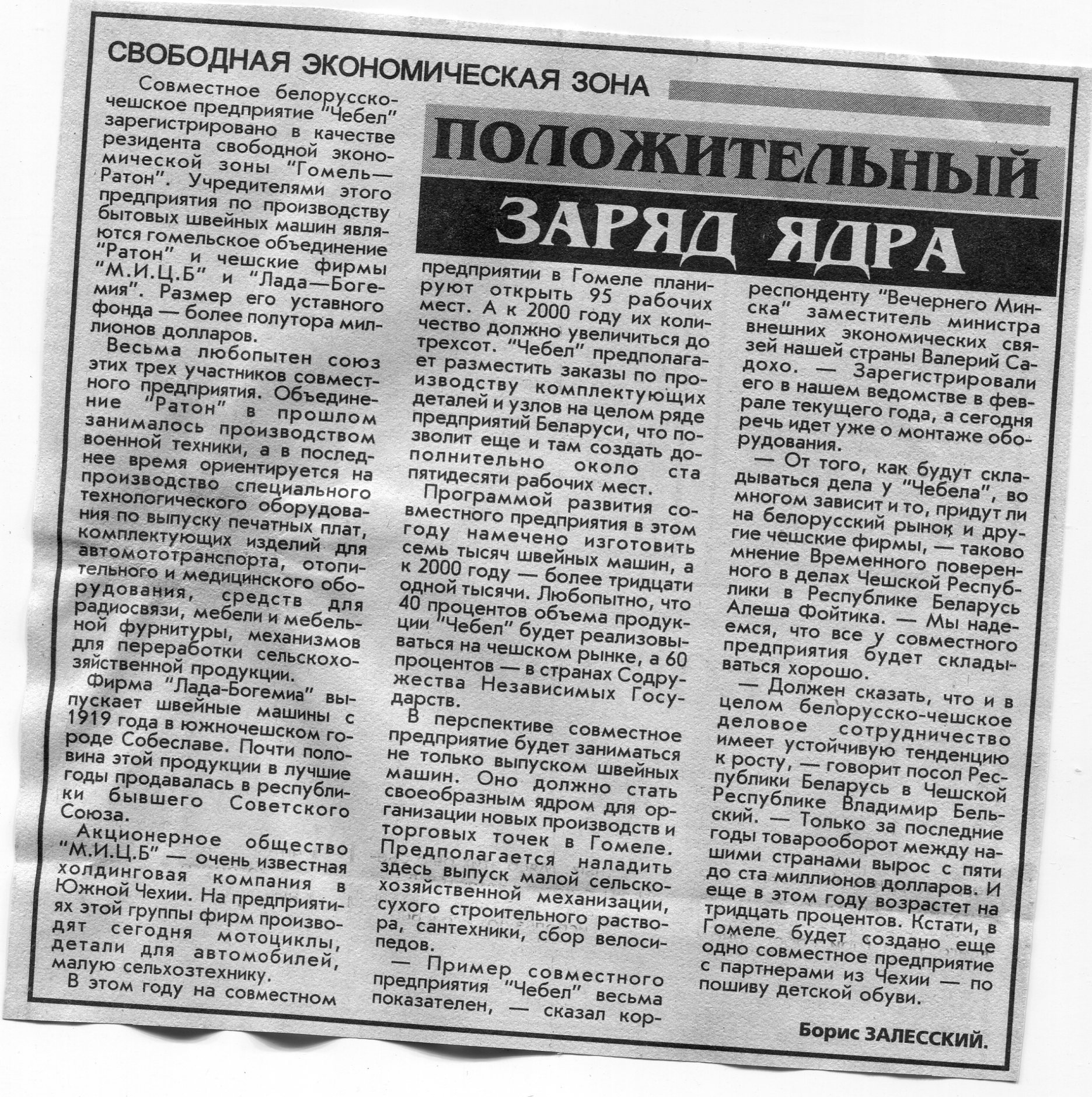 Залесский, Б. Положительный заряд ядра / Б. Залесский // Вечерний Минск. - 1998. - 6 авг.