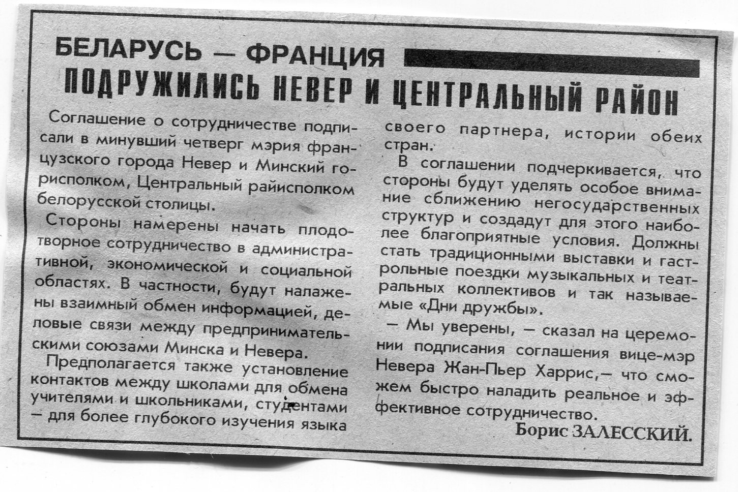 Залесский, Б. Подружились Невер и Центральный район / Б. Залесский // Вечерний Минск. - 1995. - 25 сент.