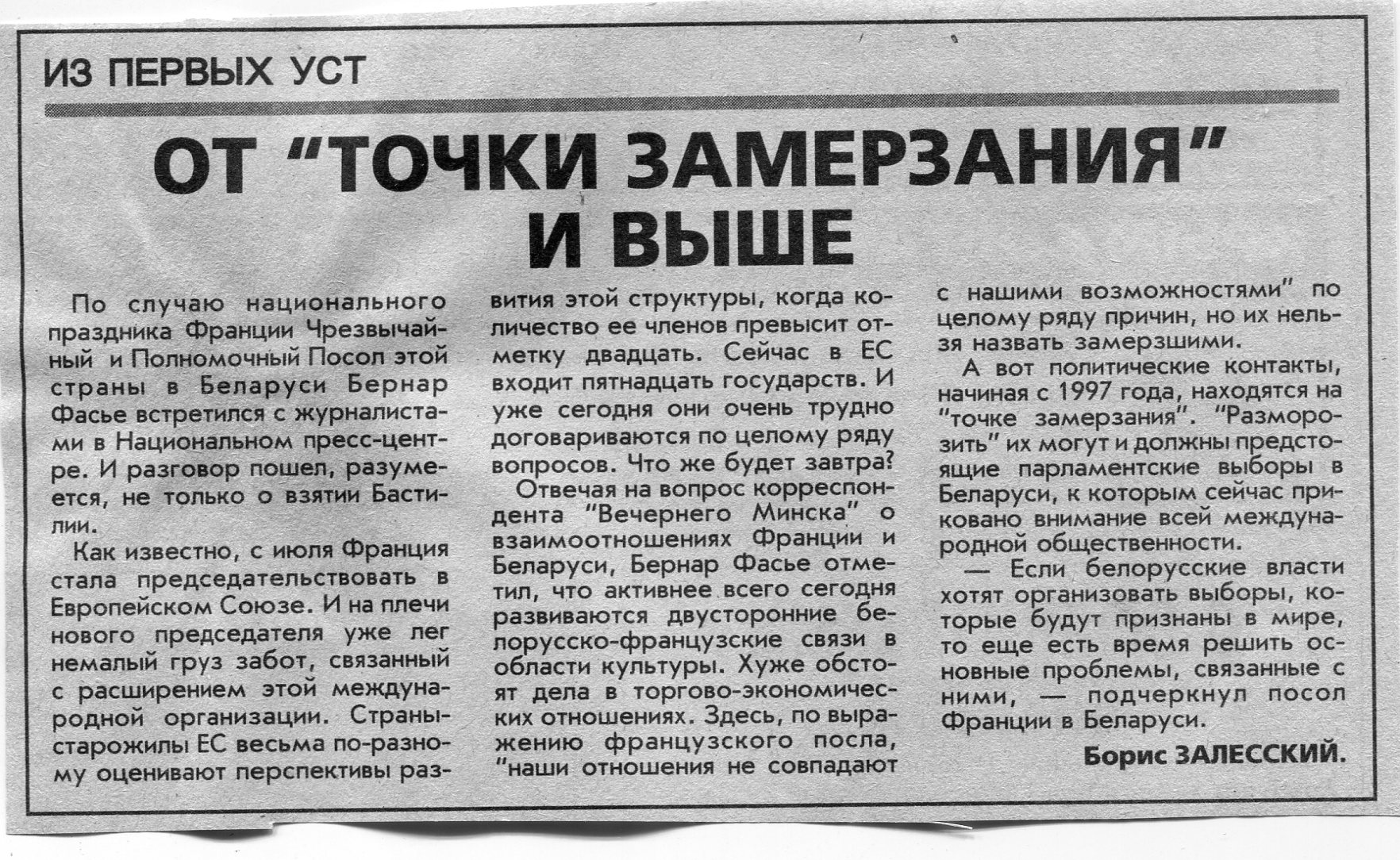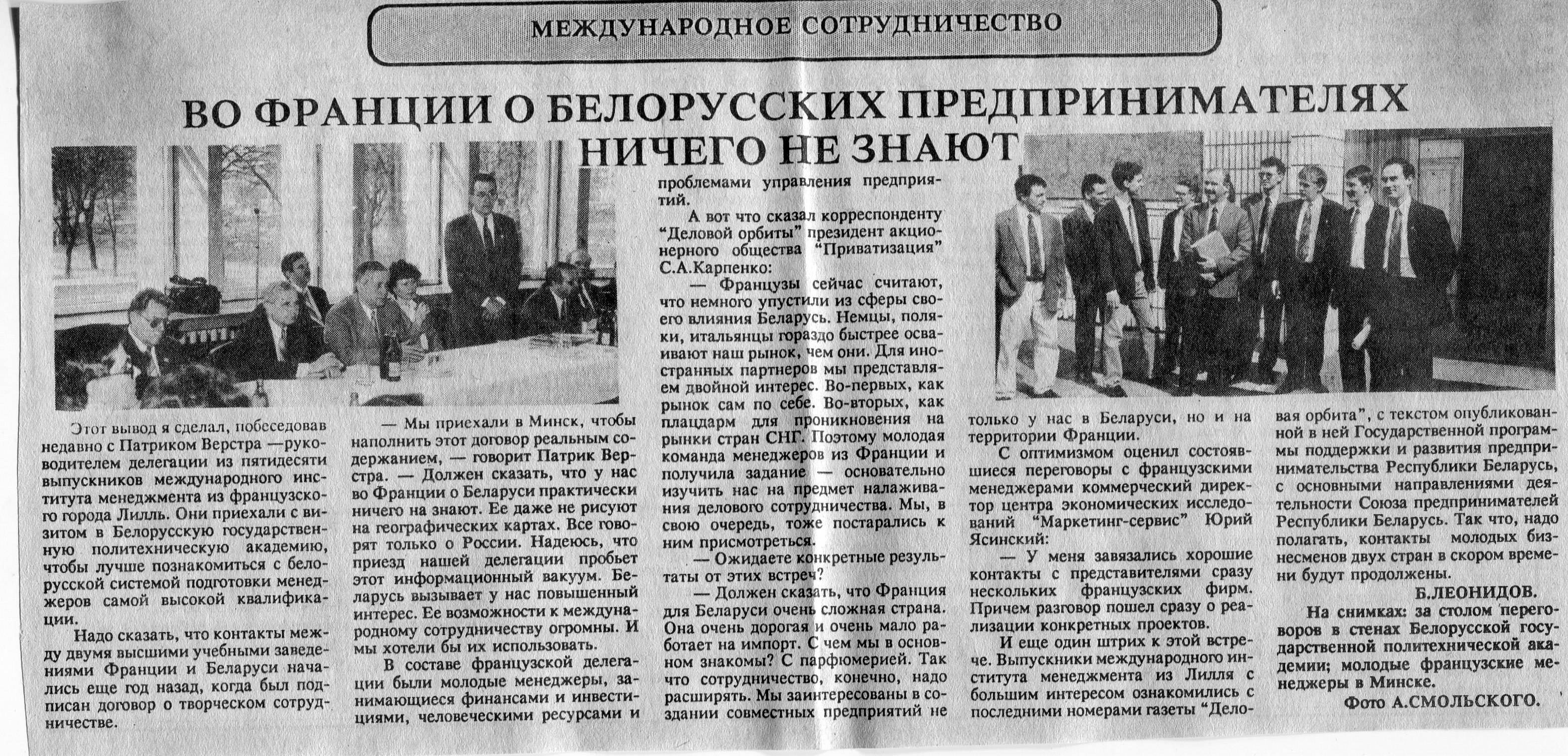Леонидов, Б. Во Франции о белорусских предпринимателях ничего не знают / Б. Залесский // Деловая орбита. - 1993. - №9. - С. 5.