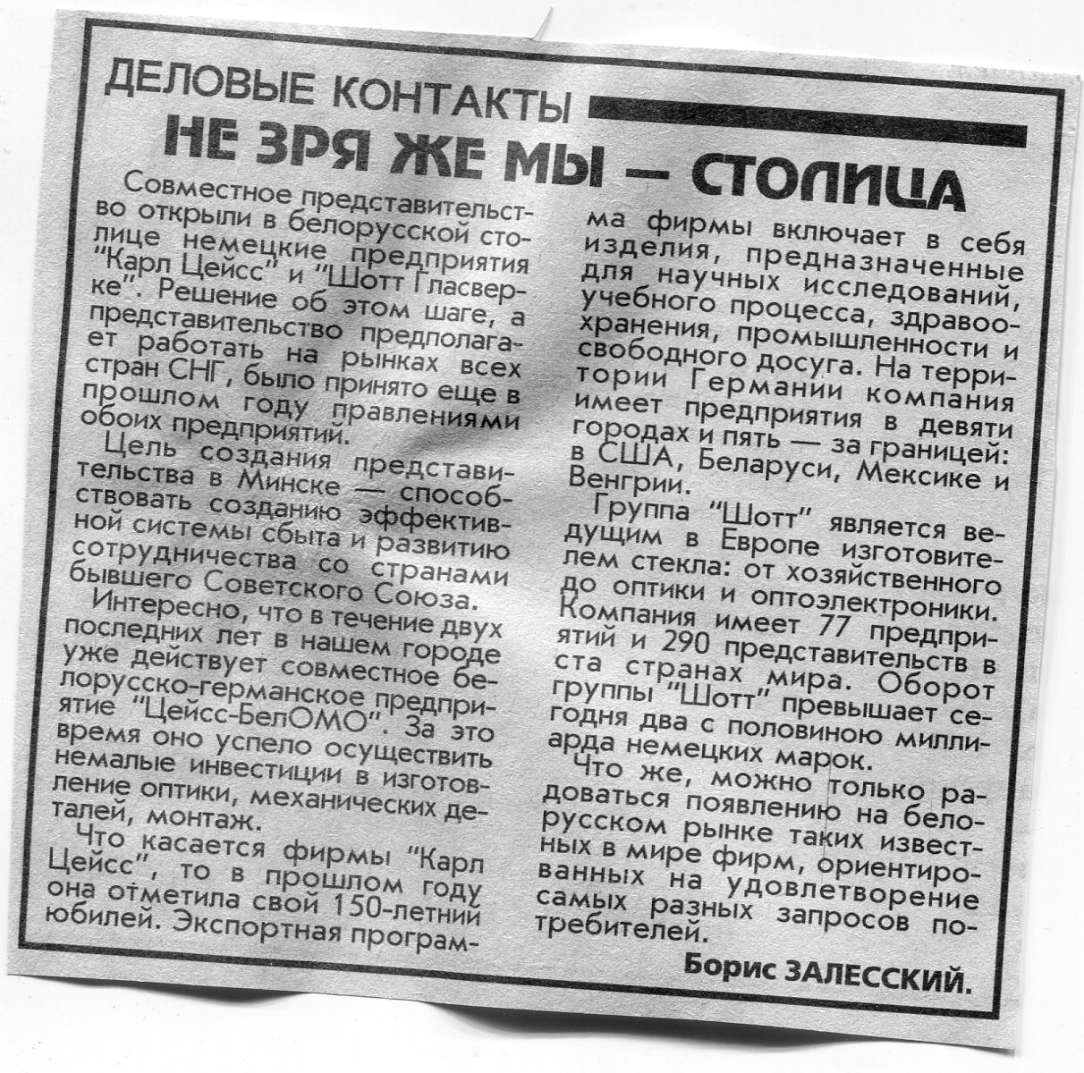 Залесский, Б. Фирма из Дюссельдорфа предлагает / Б. Залесский // Вечерний Минск. - 1997. - 13 февр.