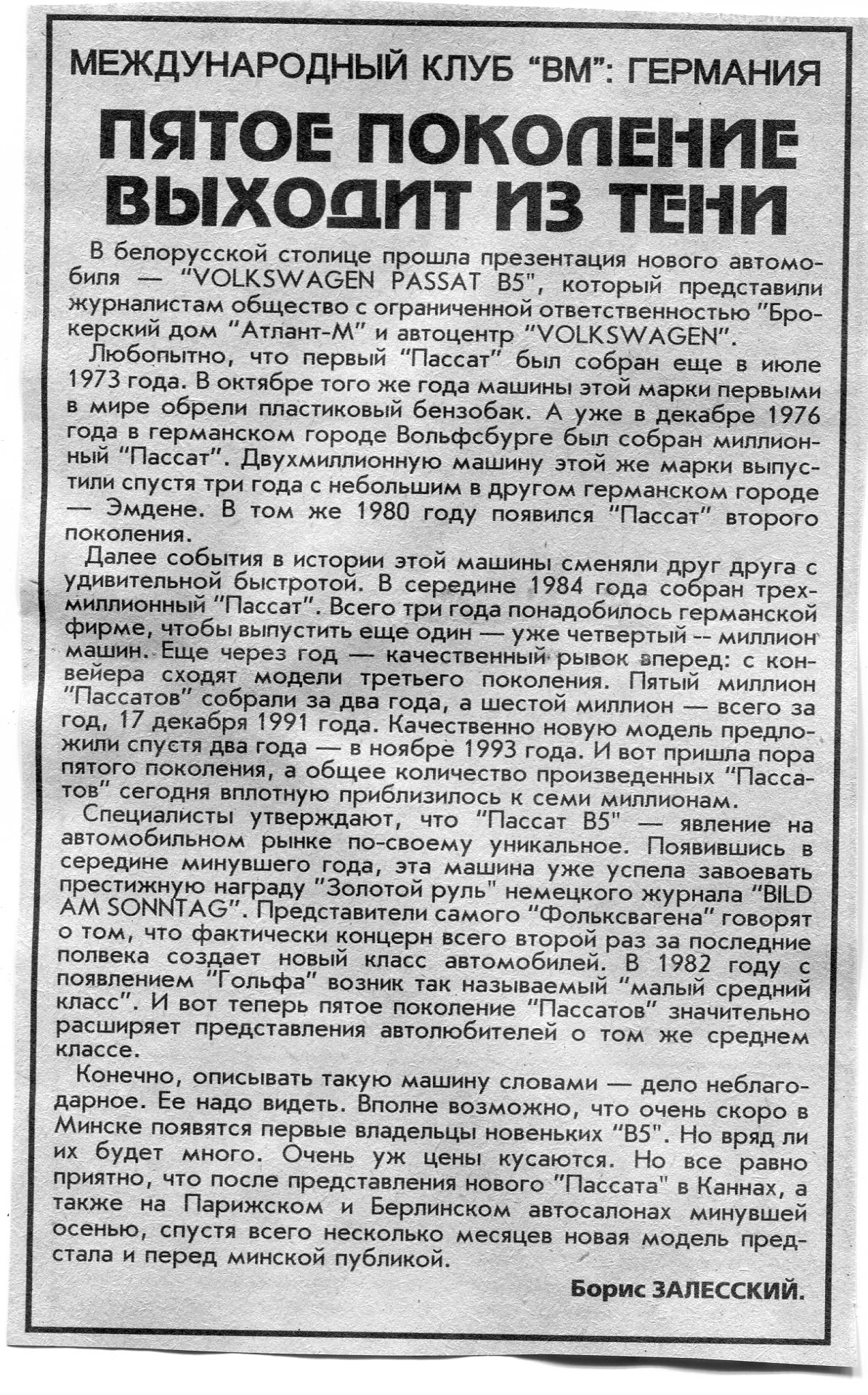 Залесский, Б. Пятое поколение выходит из тени / Б. Залесский // Вечерний Минск. - 1997. - 15 янв.