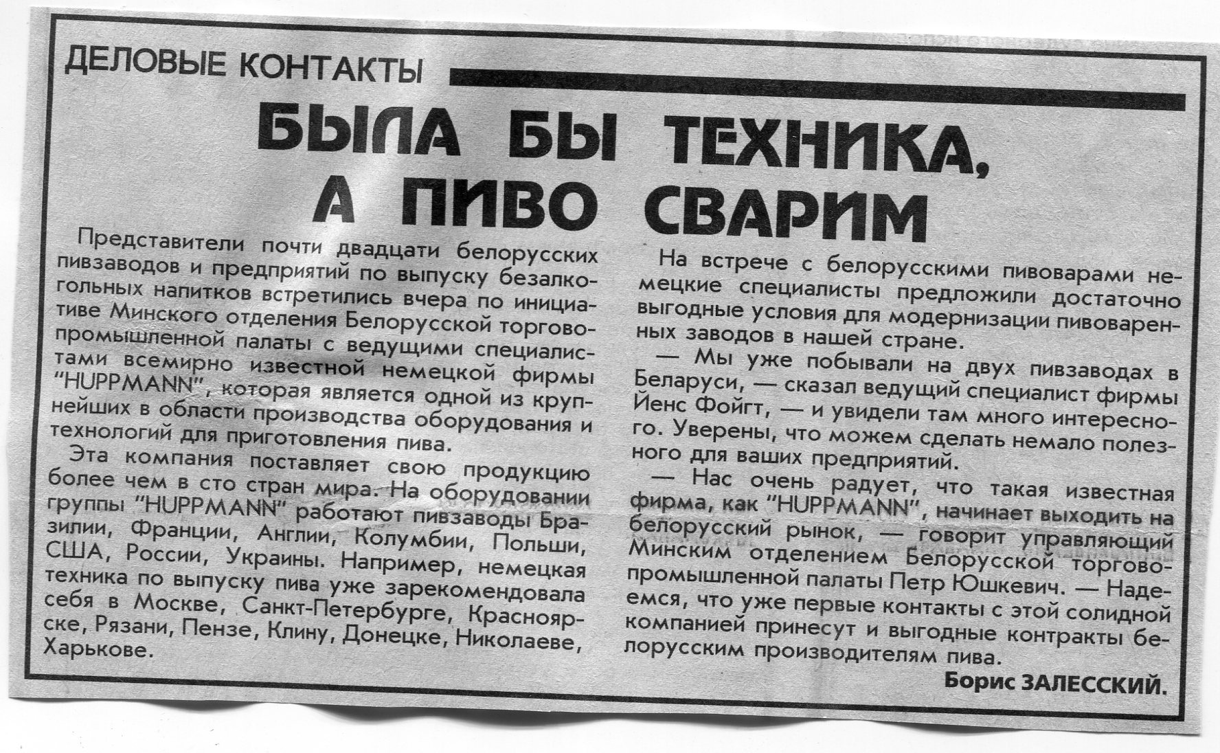 Залесский, Б. Была бы техника, а пиво сварим / Б. Залесский // Вечерний Минск. - 1997. - 12 дек.