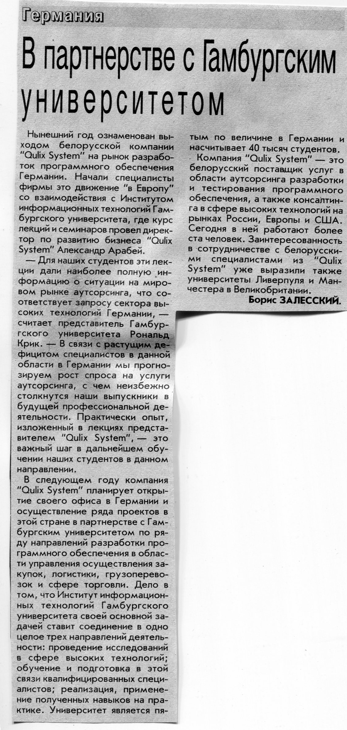 Залесский, Б. В партнерстве с Гамбургским университетом / Б. Залесский // Вечерний Минск. - 2007. - 3 сент.