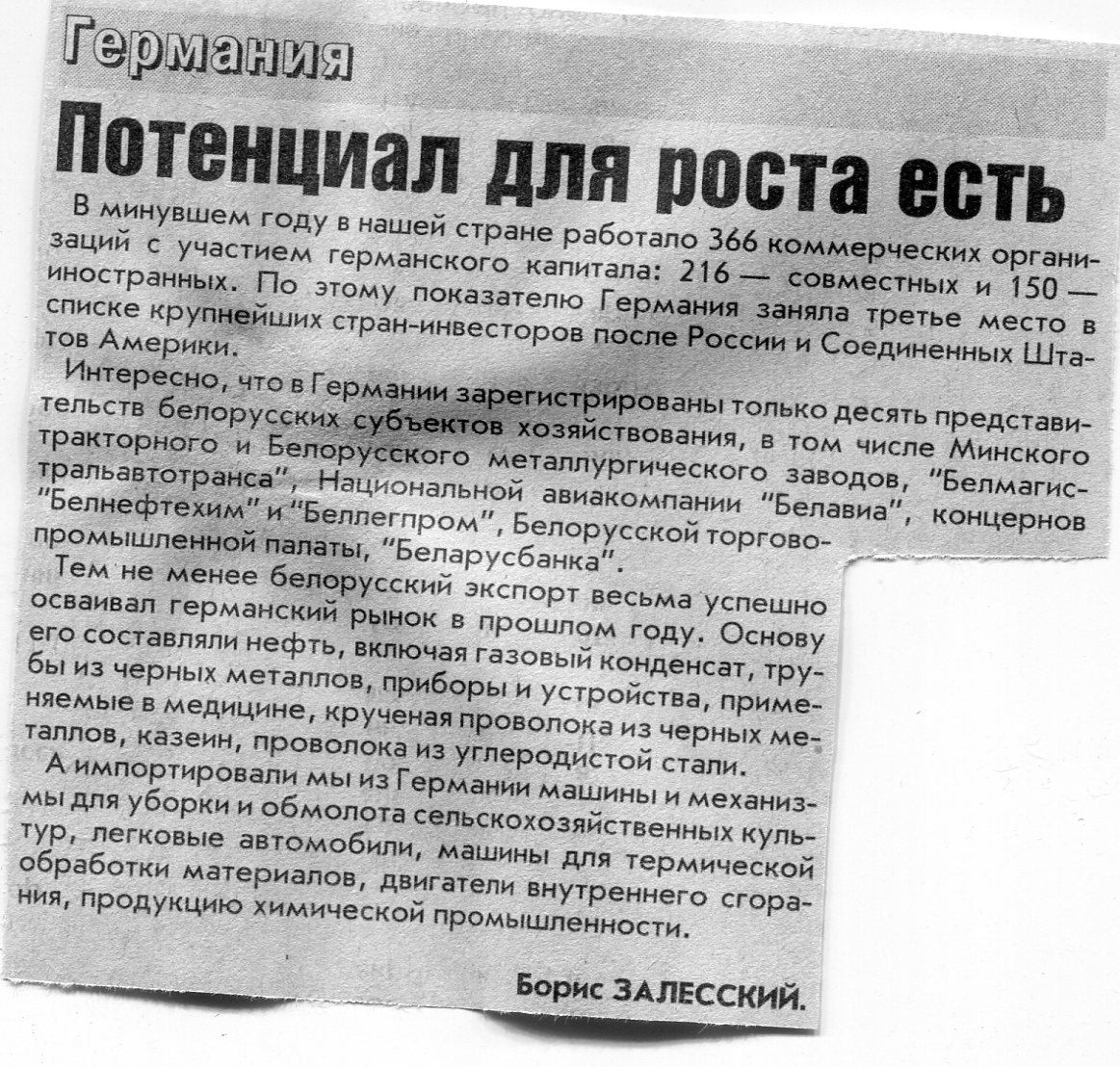 Залесский, Б. Потенциал для роста есть / Б. Залесский // Вечерний Минск. - 2007. - 26 янв.