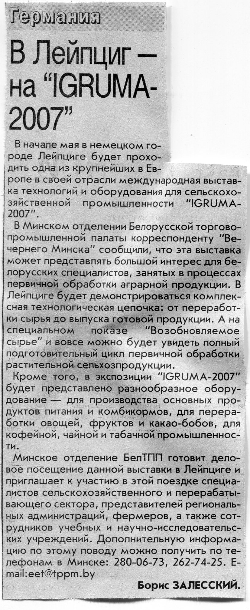 Залесский, Б. В Лейпциг - на "IGRUMA-2007" / Б. Залесский // Вечерний Минск. - 2007. - 13 апр.
