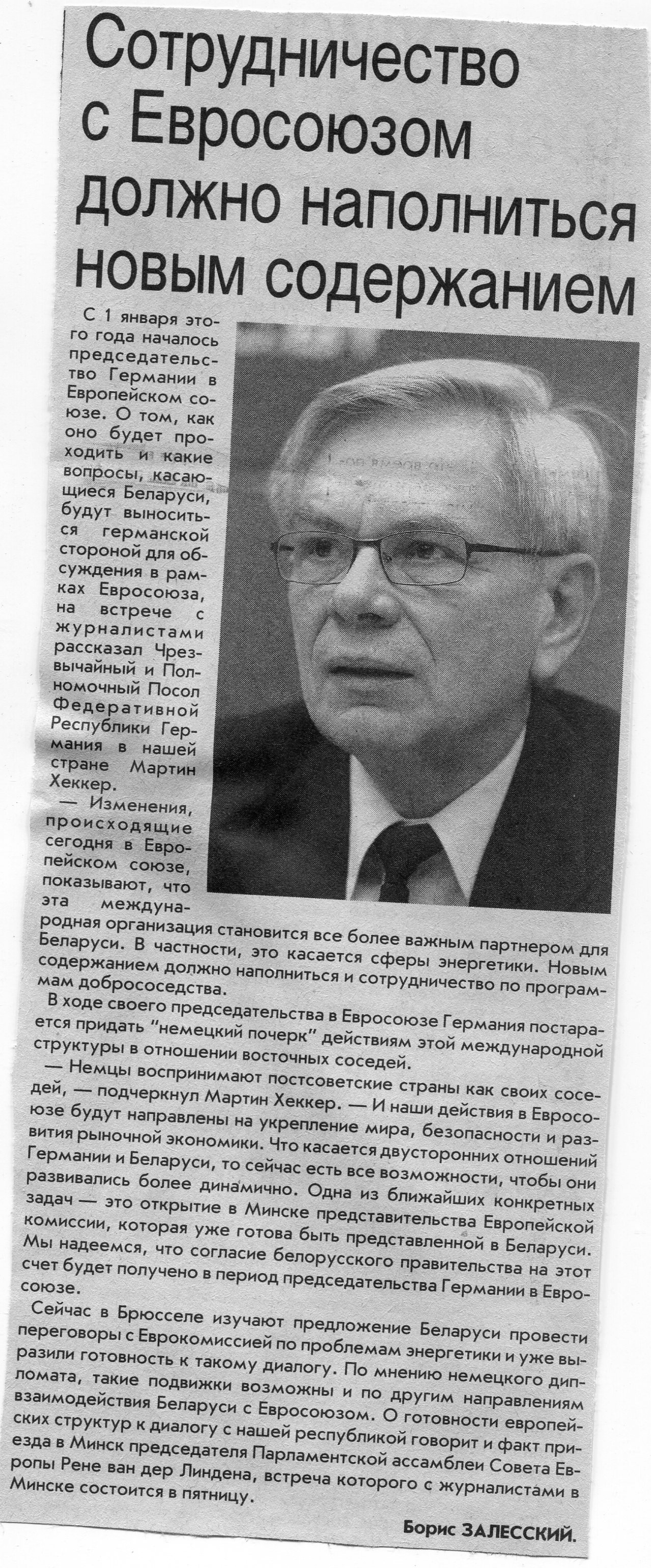 Залесский, Б. Сотрудничество с Евросоюзом должно наполниться новым содержанием / Б. Залесский // Вечерний Минск. - 2007. - 18 янв.