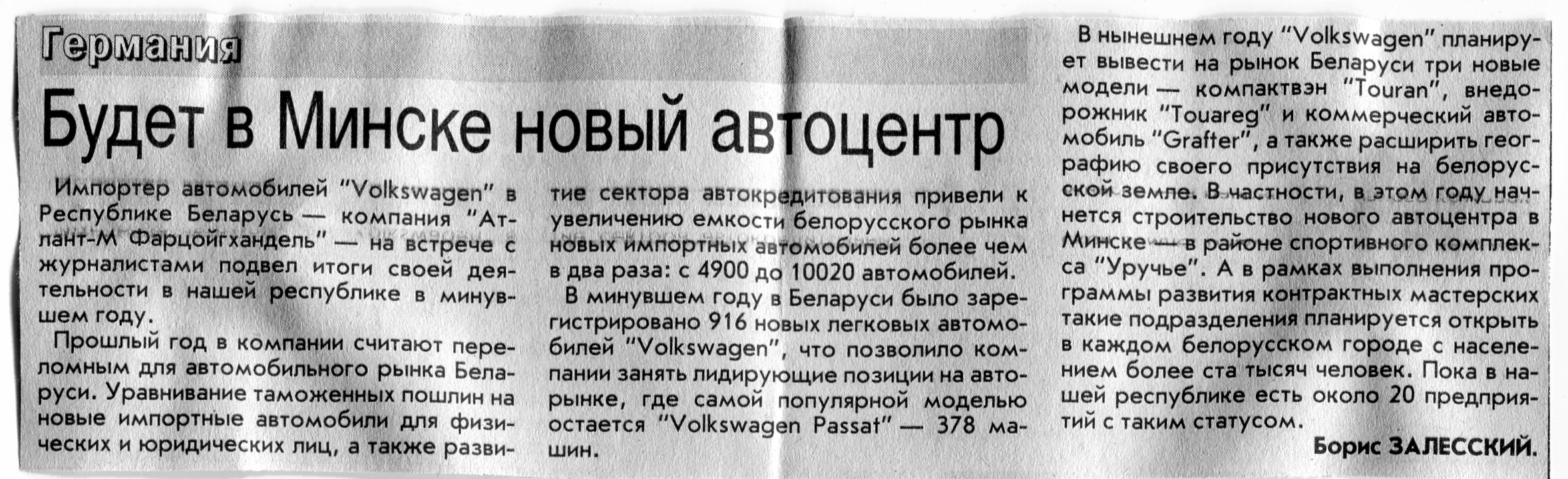 Залесский, Б. Будет в Минске новый автоцентр / Б. Залесский // Вечерний Минск. - 2007. - 18 янв.