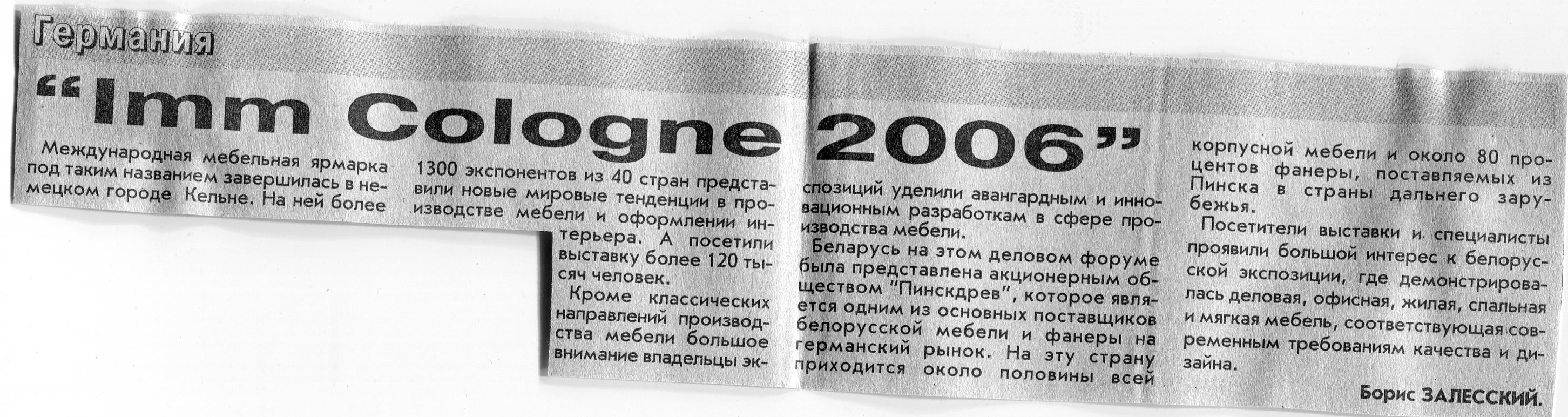 Залесский, Б. "Imm Cologne 2006" / Б. Залесский // Вечерний Минск. - 2006. - 25 янв.