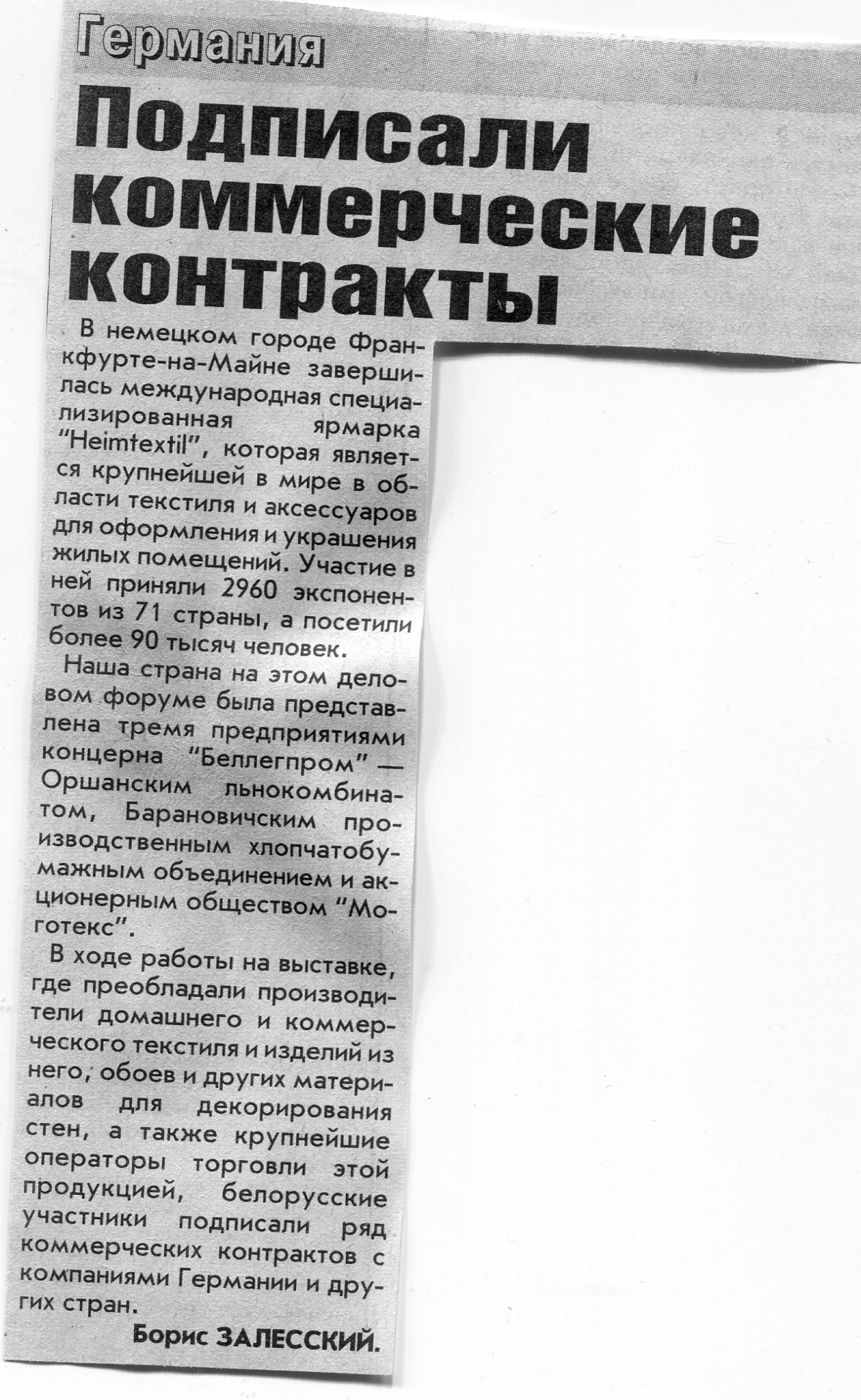 Залесский, Б. Подписали коммерческие контракты / Б. Залесский // Вечерний Минск. - 2006. - 18 янв.
