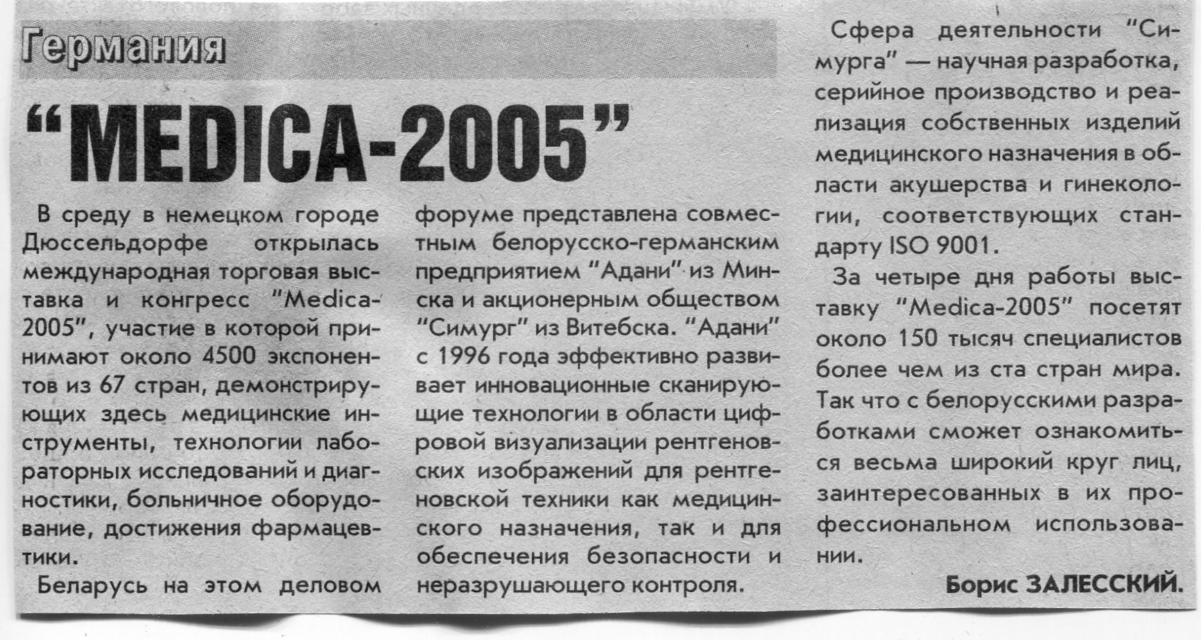 Залесский, Б. "Medica-2005" / Б. Залесский // Вечерний Минск. - 2005. - 18 нояб.