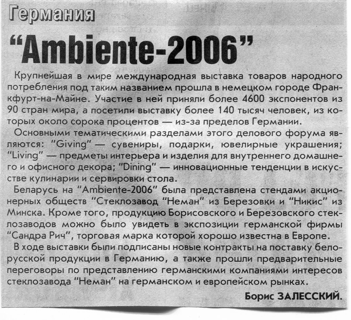 Залесский, Б. "Ambiente-2006" / Б. Залесский // Вечерний Минск. - 2006. - 20 февр.