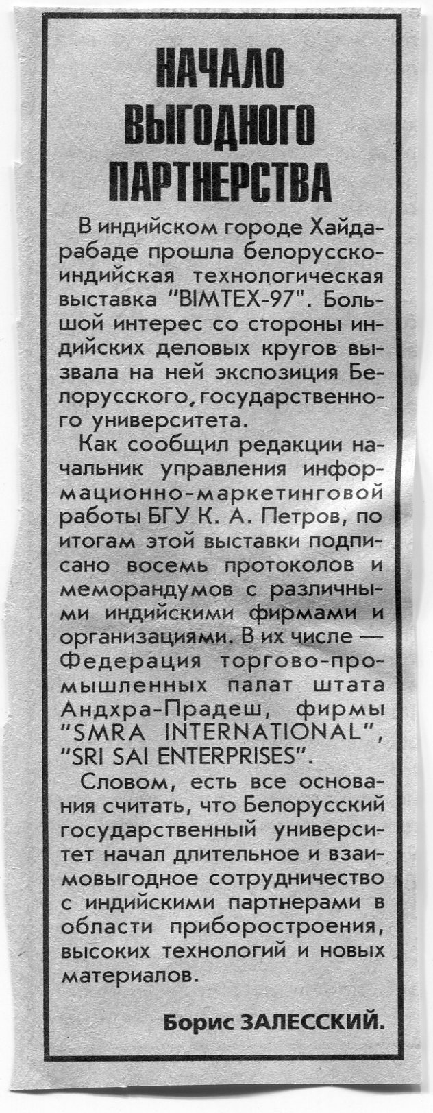 Залесский, Б. Начало выгодного партнерства / Б. Залесский // Вечерний Минск. - 1997. - 8 окт.